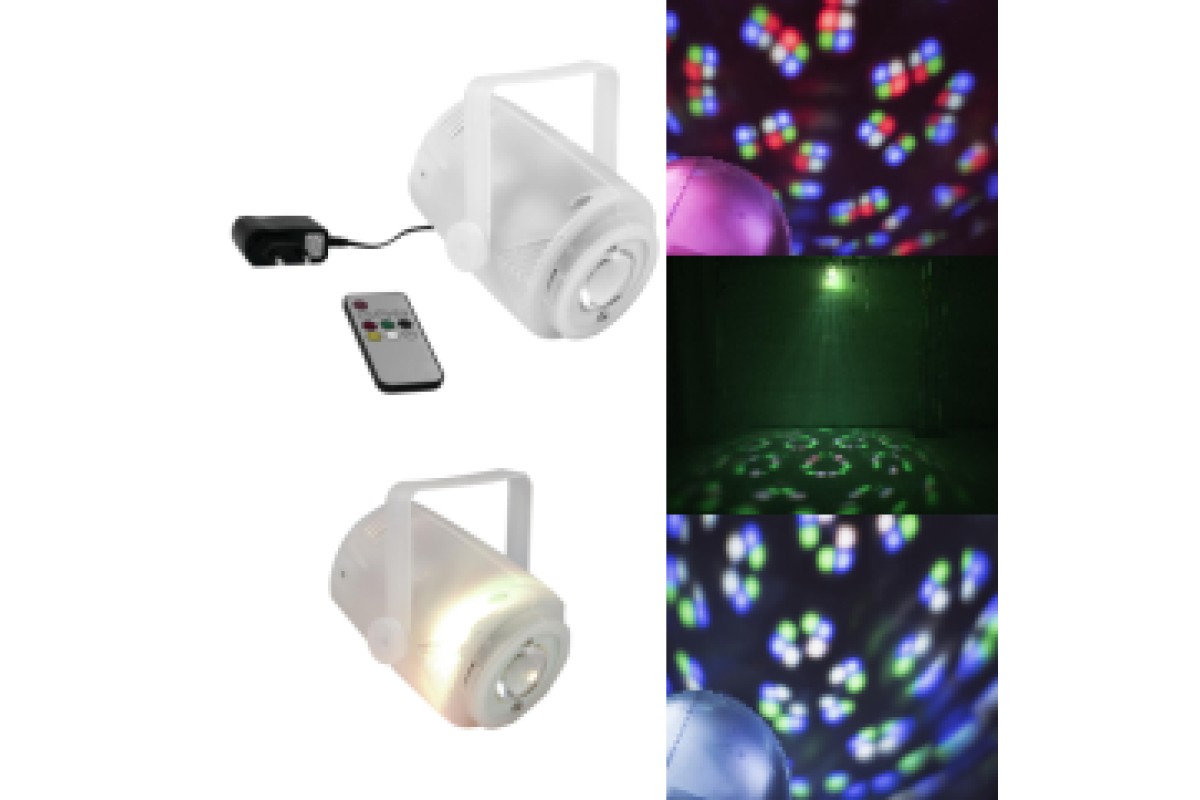 Прилад підтримує звукову активацію, автоматичний режим та керування пультом ДУ, що дозволяє створювати ефектне світлове шоу під музику або працювати в автоматичному режимі без додаткового втручання. Це робить його ідеальним для диско, клубів, сценічних виступів, вечірок та святкових заходів.