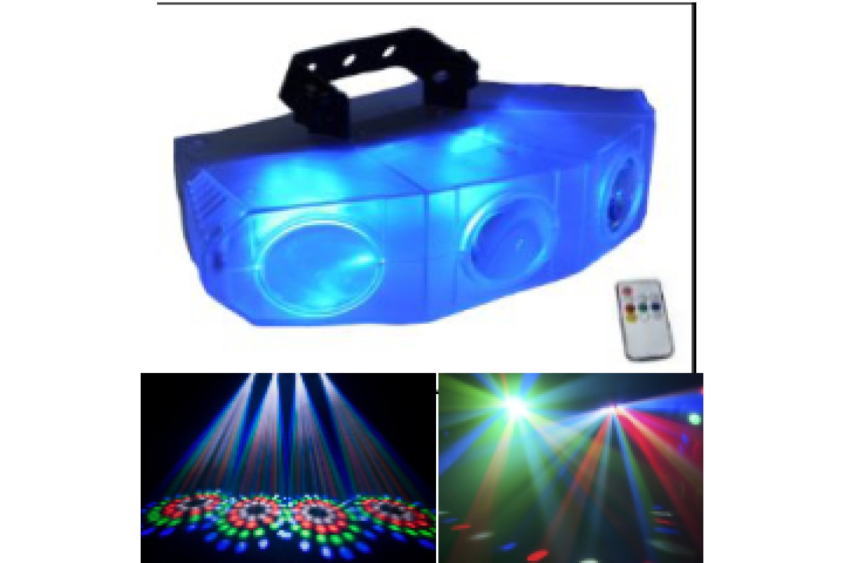 Прилад підтримує звукову активацію, автоматичний режим та керування пультом ДУ, що дозволяє створювати ефектне світлове шоу під музику або працювати в автоматичному режимі без додаткового втручання.