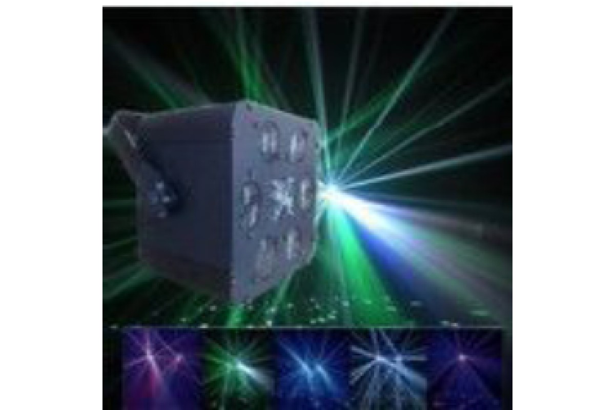 Прилад оснащений 2 × 10 Вт 4-в-1 RGBW світлодіодами, що забезпечують 256 варіантів кольорів, а ресурс світлодіодів складає 10 000 годин, що гарантує тривале і надійне використання. Step motor дозволяє керувати обертанням променів і стробуванням, а електронний дисплей робить налаштування приладу простим і зручним.