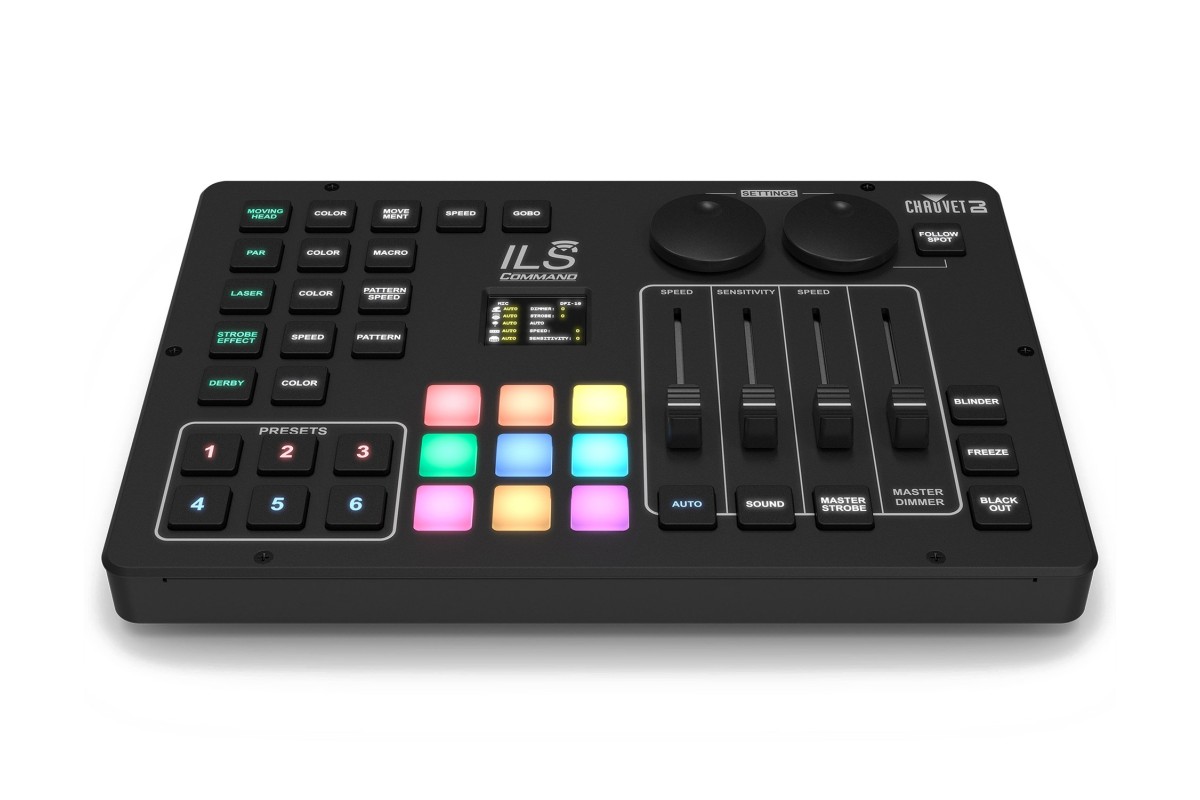 ILS Command ідеально підходить для клубів, сценічних шоу та концертів, забезпечуючи швидке та зручне управління світловими приладами без необхідності складного налаштування.