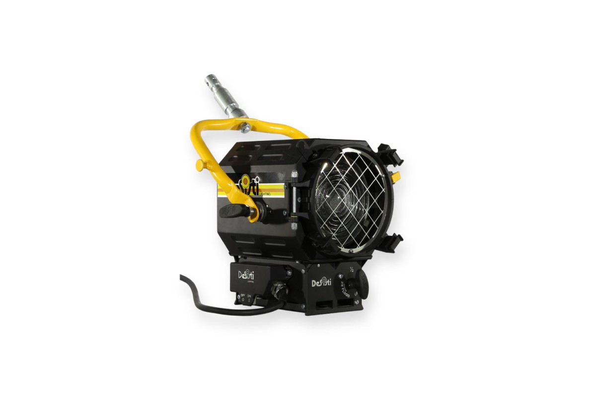 Компактный высокоэффективный прожектор с линзой Френеля. Использует кварцево-галогенные лампы с цоколем G22 и длиной световой части 63.5 мм мощностью до 1.2 кВт. Высококачественная ударопрочная боросиликатная стеклянная линза Френеля диаметром 150 мм, установленная на пружинной опоре. Прочный и легкий корпус из углеродистой стали, с низким уровнем бликов и черным эпоксидным покрытием, с двойными внутренними стенками и усилениями. Высокоэффективное конвекционное охлаждение. Тяжелый цоколь G-22 для галогенных ламп с рычагом активации и специальными контактами для равномерного распределения тока по контактам лампы. Специальный биметаллический алюминиевый рефлектор обеспечивает высокую степень отражения и термическую стойкость для длительного срока службы. Фокусировочный механизм с тросовой передачей из нержавеющей стали, направляет каретку лампы на опорах из тефлона вдоль двух направляющих из нержавеющей стали. Это обеспечивает плавную работу и ограничивает вибрацию каретки лампы при фокусировке в любом наклонном положении прибора, предотвращая выход лампы из строя во время работы.