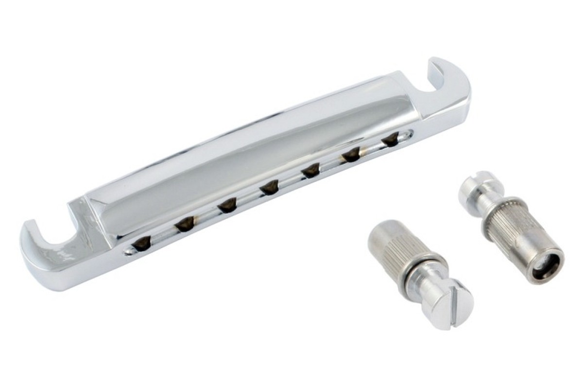 Легкість встановлення: Просте кріплення завдяки посадочним гвинтам та втулкам, що дозволяє швидко змінити тейл на вашій гітарі.