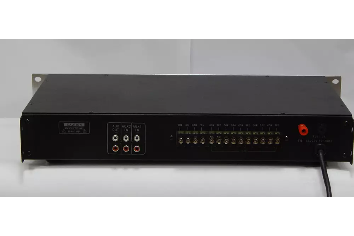 Модель поддерживает 100V трансляционные линии и позволяет независимо управлять каждой из пяти зон трансляции. Усилитель имеет набор входов для микрофонов, линейных источников и проигрывателей, что делает его универсальным решением для систем оповещения, фоновой музыки и локальных трансляций.