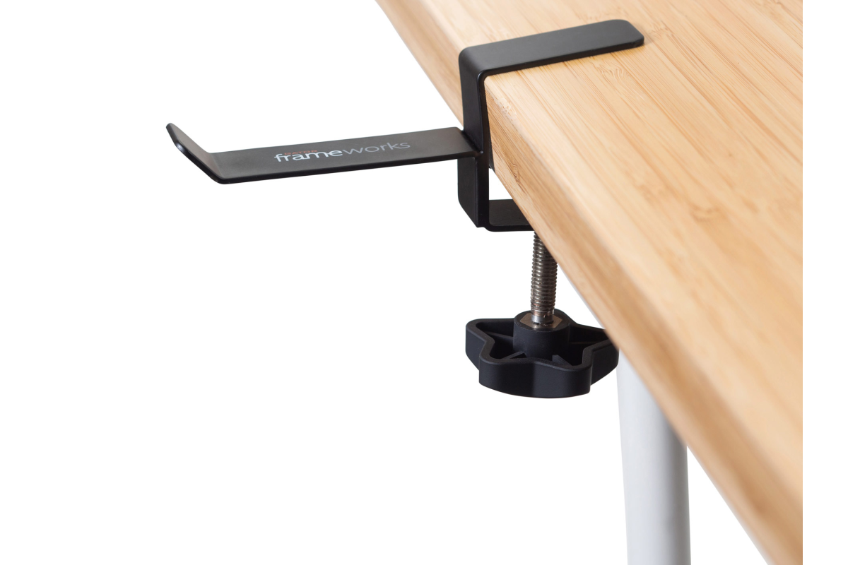 Фиксируется на краю столешницы, чтобы сохранить место на рабочем столе