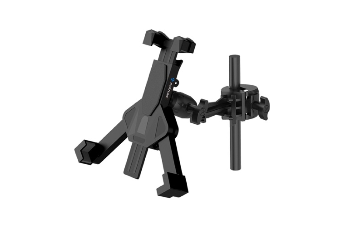 Удобный и универсальный держатель для ноутбуков и планшетов, позволяющий надежно закрепить устройство на стойках или плоских поверхностях и регулировать угол обзора.