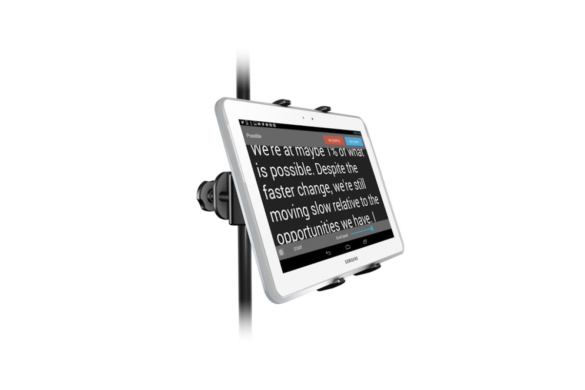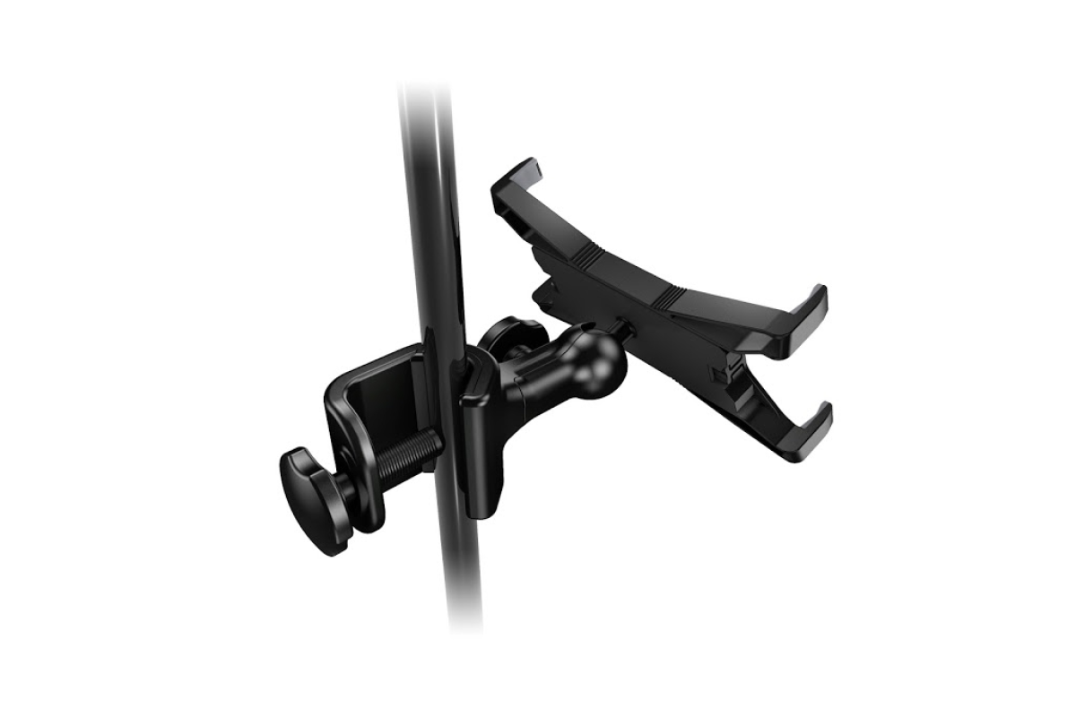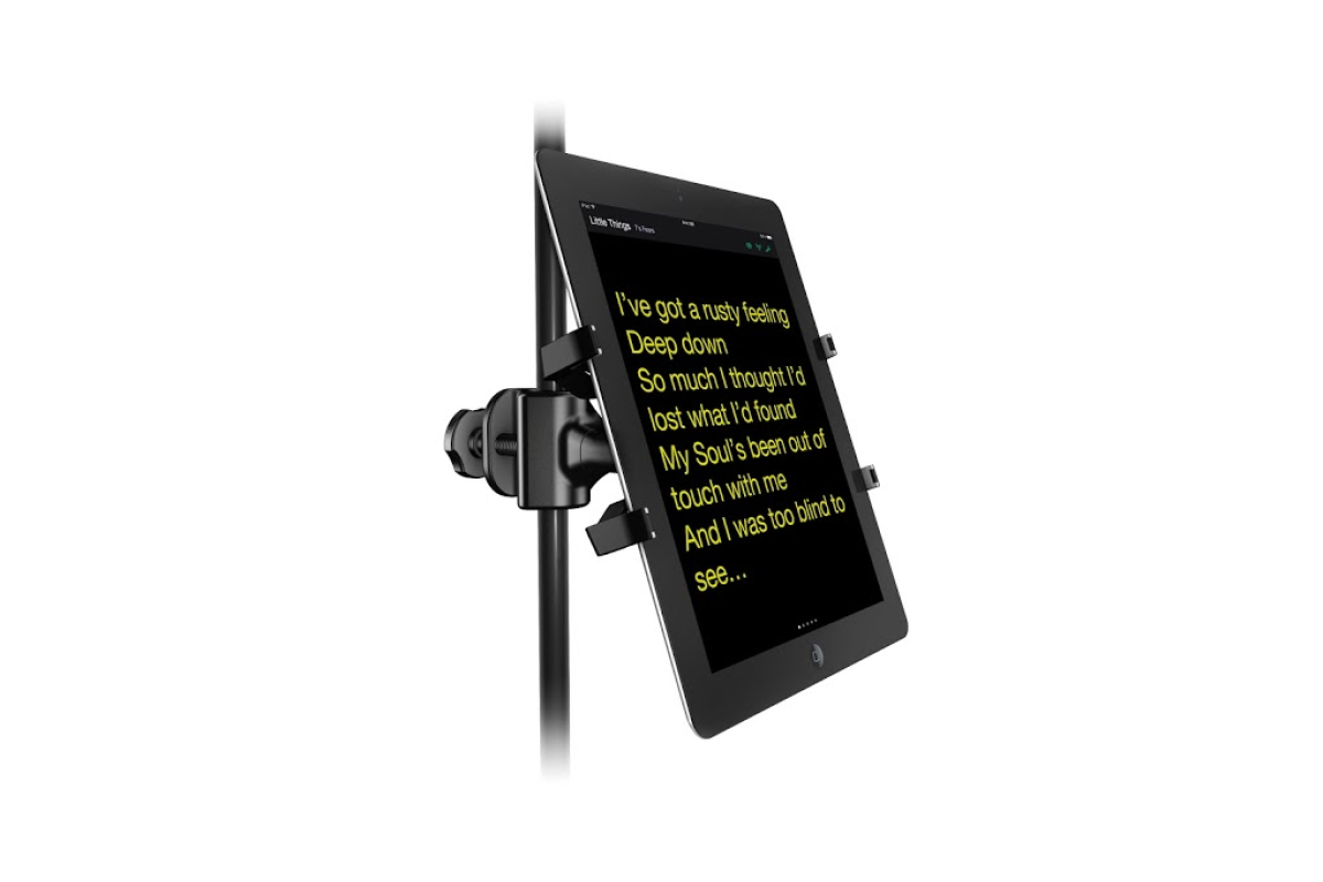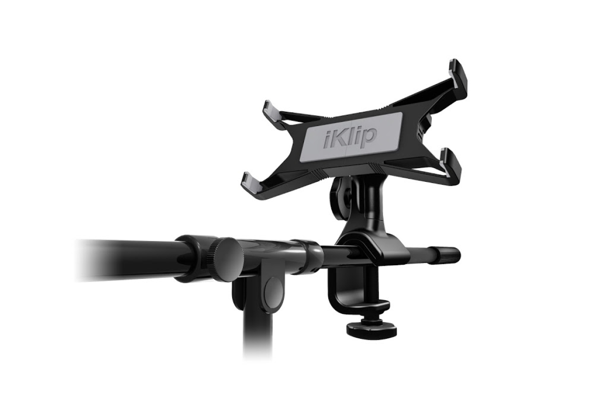 Благодаря новому владельцу iKlip Xpand вы можете избежать подобной ситуации. iKlip Xpand – это регулируемый держатель, совместимый с большинством планшетов. Четыре настраиваемых упора и зажим для стойки, изготовленные с применением Gorilla Grip технологии надежно удерживают ваш гаджет на микрофонной стойке, а специальный шарнир позволяет точно настроить его положение.