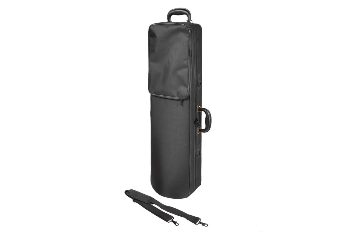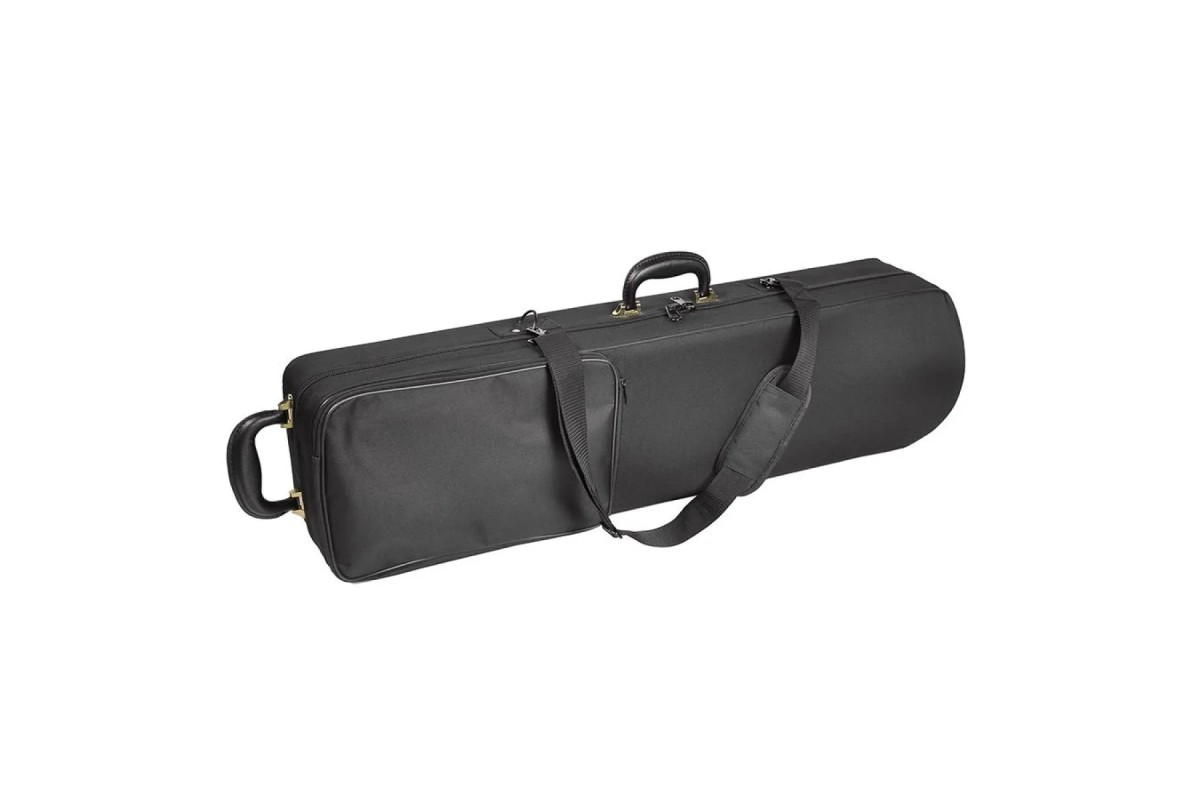В комплекте с тромбоном поставляются мундштук и крепкий футляр, обеспечивающий надежную защиту при хранении и транспортировке. Конструкция футляра продумана для удобной переноски и предотвращения повреждений инструмента.