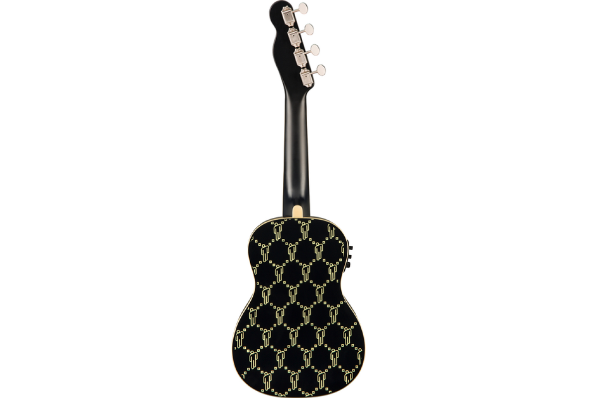 FENDER BILLIE EILISH UKULELE BLK WN формы концерт имеет верхний, нижний деками и обечайкой из сапеле, и украшен фирменным логотипом Billie Blohsh на матовом черном фоне. Укулеле оснащен предусилителем Fishman Kula для тех, кто хочет подключиться.