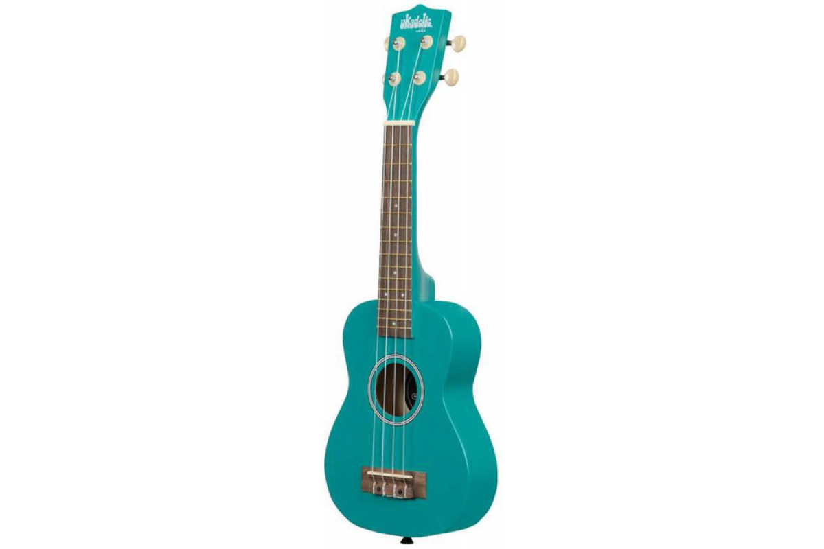 Укулеле, 4 струны, размер – сопрано, противня – тополь, гриф – сосна/лаурель, цвет – синий.