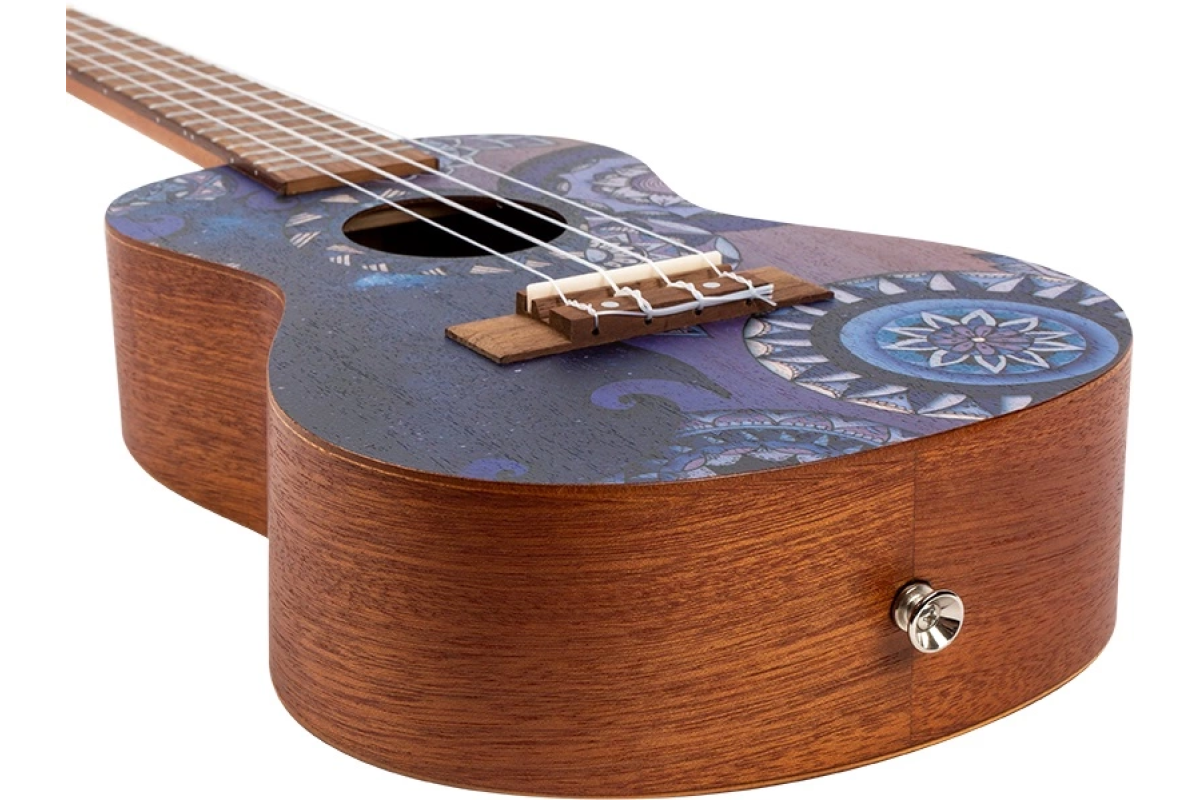 Модель имеет корпус из ламинированного сапеля , обеспечивающий теплое, сбалансированное звучание. А размер концерт (concert) – идеальный компромисс между компактностью и резонансом. Гриф из африканского окунумэ удобно лежит в руке, а современная фурнитура и струны Aquila гарантируют стабильное устройство и комфортную игру.
