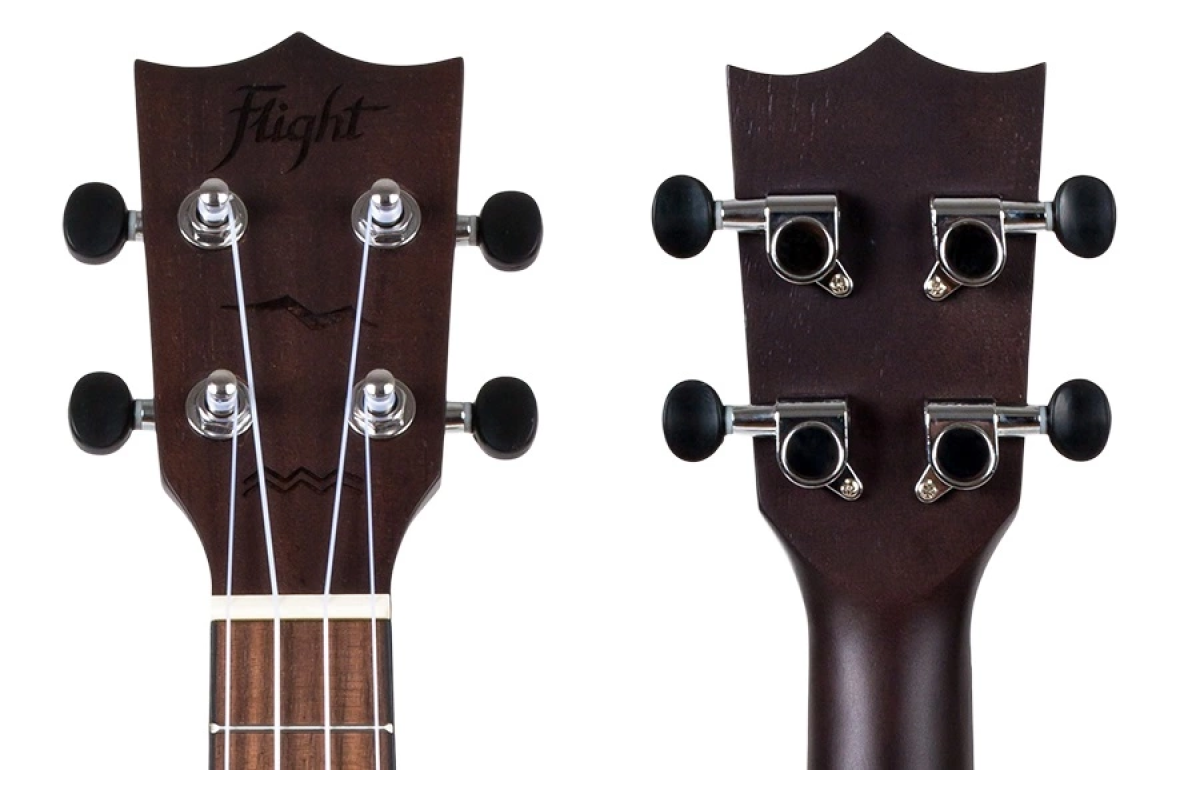 Дизайн головки грифа – неотъемлемый элемент укулеле Flight. Во всех наших укулеле головка грифа тщательно продумана и у данной модели оснащена колышками закрытого типа, которые прекрасно держат порядок.