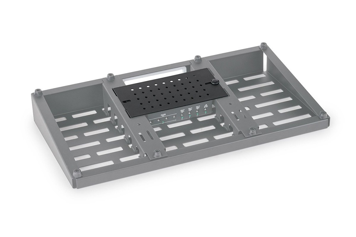 RockBoard® The Tray — це інноваційне універсальне кріплення, створене для зручної та надійної установки блоків живлення під педалбордом. Це рішення дозволяє акуратно розмістити джерело живлення, звільнивши місце на поверхні для педалей ефектів та зберігаючи охайний вигляд вашої системи.