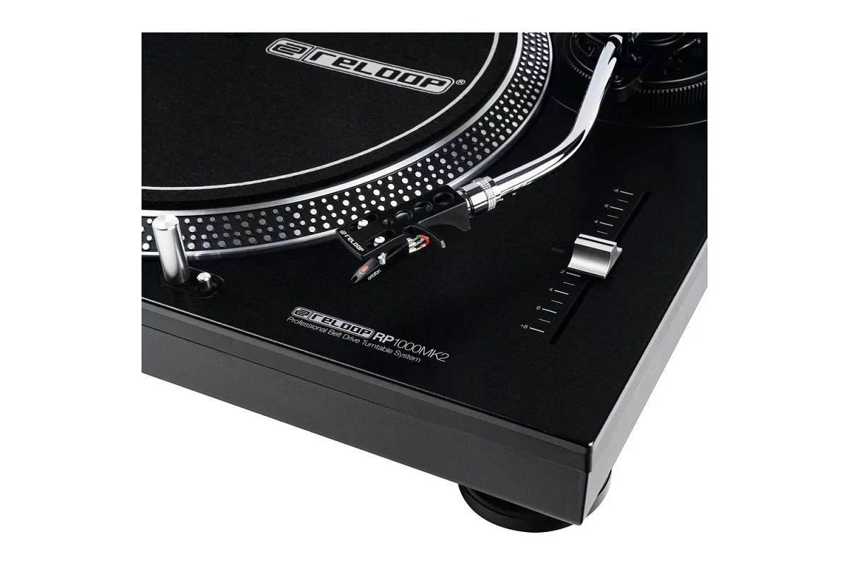 Reloop RP-1000 MK2 - это идеальный проигрыватель для начинающих диджеев и ценителей Hi-Fi. Данная модель оснащена ременным приводом, позволяющим стабилизировать диск проигрывателя и предотвратить нежелательные вибрации. Регулятор высоты тона имеет диапазон +/-10%. Проигрыватель оснащен статически взвешенным S-образным тонармом с гидравлическим подъемом и предотвращающим скольжение механизмом.