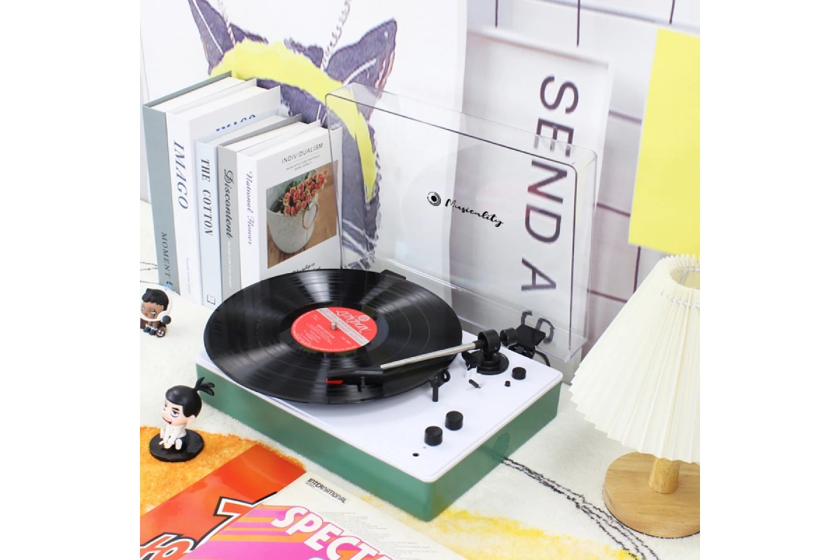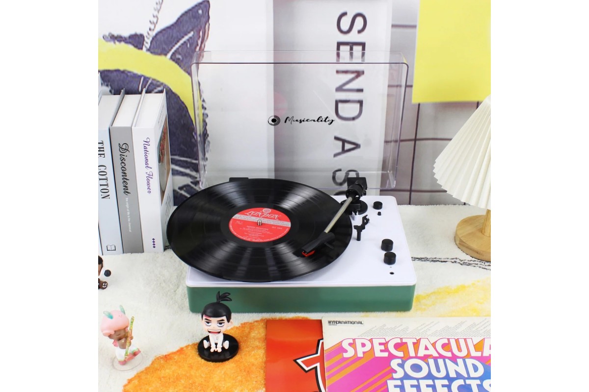 Одним из основных преимуществ этого плеера является наличие Bluetooth 5.0, что позволяет беспроводно подключать к нему другие аксессуары и воспроизводить музыку с них. Встраиваемые боковые динамики обеспечивают качественное стереозвучание, позволяя наслаждаться любимыми треками с глубиной и четкостью. Функция автостопа автоматически останавливает проигрыватель после завершения воспроизведения пластинки, защищая иглу и пластинку от излишнего износа, что делает его использование еще более удобным и безопасным. Проигрыватель оснащен пылезащитной крышкой, защищающей пластинки и механизмы проигрывателя от пыли и грязи, сохраняя их в идеальном состоянии.