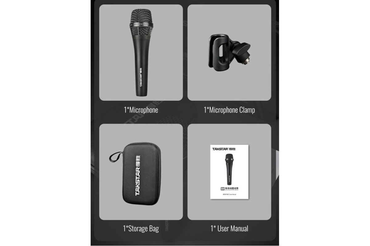 Takstar GH1 — це високоякісний динамічний вокальний мікрофон, створений спеціально для професійних виконавців, ведучих та виступів наживо. Модель поєднує у собі точність відтворення звуку, міцну конструкцію та оптимізовану частотну характеристику, що робить її чудовим вибором як для сцени, так і для студійного використання.