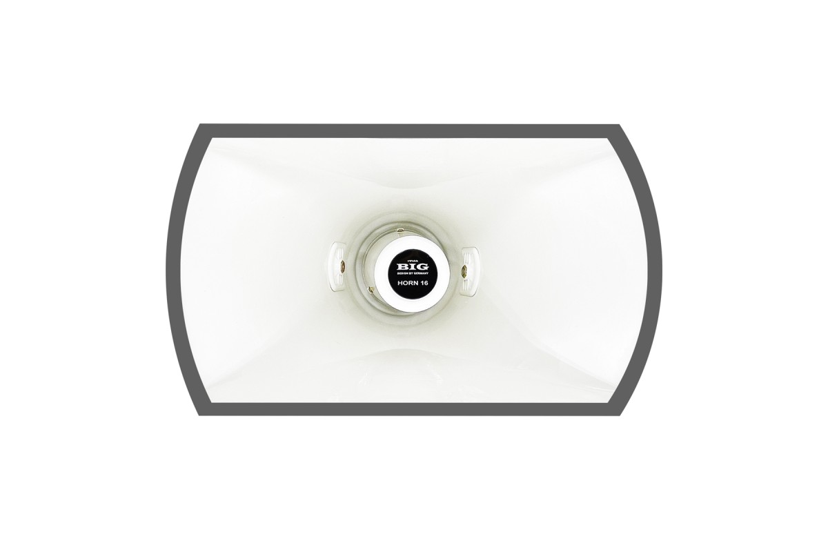 BIG HORN16 — це всепогодний рупорний гучномовець, призначений для трансляційного оповіщення, сигналізації та публічних оголошень. Він забезпечує чіткий і потужний звук навіть на відкритих просторах завдяки міцному алюмінієвому корпусу.
