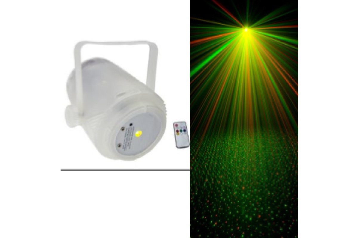 Прилад оснащений потужними лазерами: зелений лазер 50 мВт і червоний лазер 150 мВт, що забезпечують насичене багатобарвне світлове покриття і яскраві динамічні ефекти. Підтримує звукову активацію та автоматичний режим, що дозволяє створювати ефектні лазерні шоу під музику або в автоматичному режимі без додаткового керування.