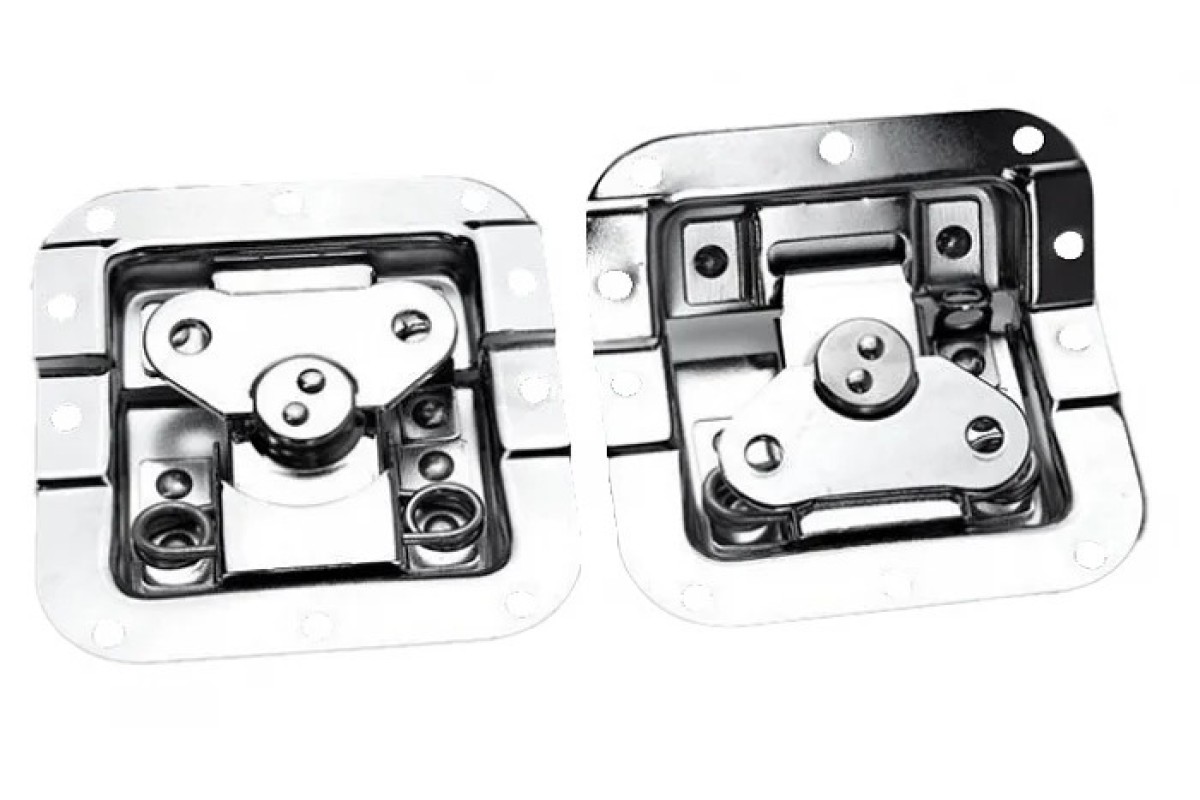 Замок типа "бабочка", средний, плоский, пружинный, с петлями.