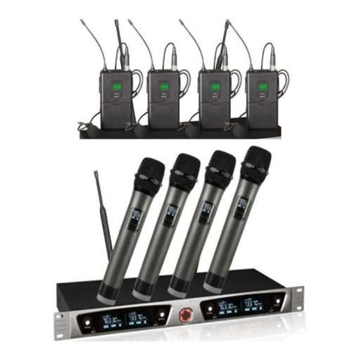 Радиосистема с четырьмя ручными микрофонами и четырьмя петличными (главными) микрофонами Emiter-S TA
