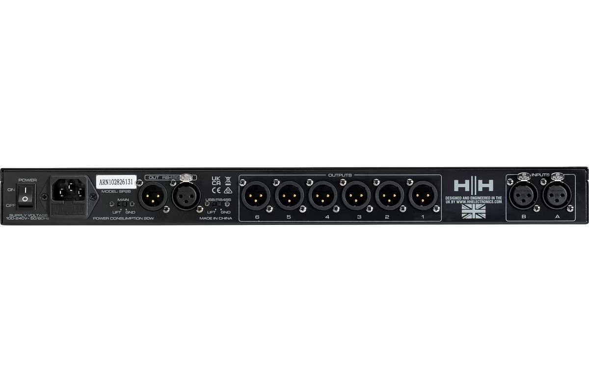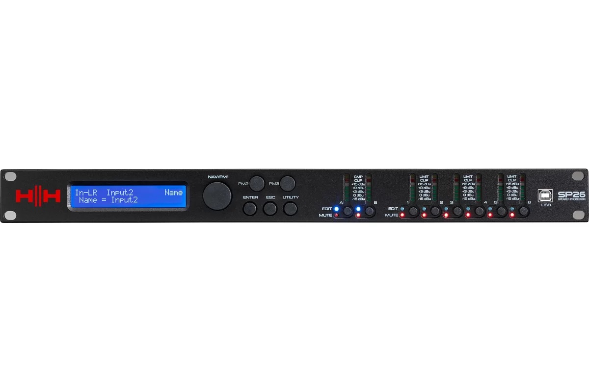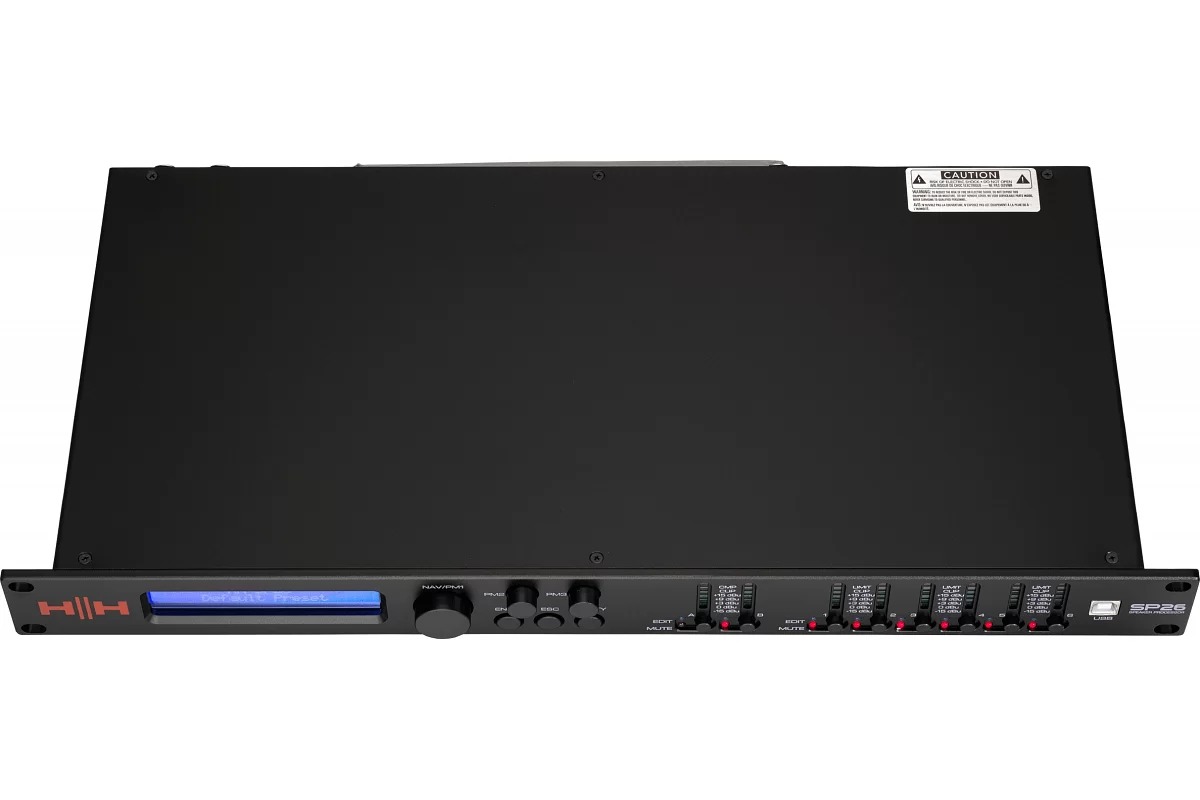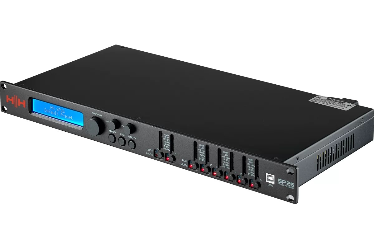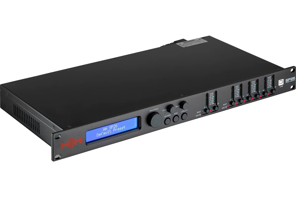 SP26 – полнофункциональная цифровая система управления колонками с 2 входами и 6 выходами. Имеет 2 аналоговых входа и 6 аналоговых выходов, каждый из которых управляется мощным DSP Engine. Каждый входной канал обеспечивает параметрический эквалайзер, регулировку усиления, динамическое усиление нижних частот, функцию нойзгейта, компрессор RMS, внутренний генератор белого/розового шума и настраиваемую задержку. Каждый выход предлагает до 7 PEQ и кроссоверных фильтров. Простая настройка обеспечивается интуитивно понятными элементами управления на передней панели и интерактивным ЖК-дисплеем для локальной настройки или специальным интерфейсом управления ПК для удаленного мониторинга и настройки через USB или RS485. Процессор громкоговорителя SP26 является идеальным дополнением к любой акустической системе HH, подходящей для многих приложений, таких как живой звук, внутренние и внешние мероприятия, публичное выступление, театральные представления и гастроли. Он также поставляется с профессионально созданными звуковыми настройками для использования с системой линейного массива TNA, что упрощает настройки прямо из коробки.