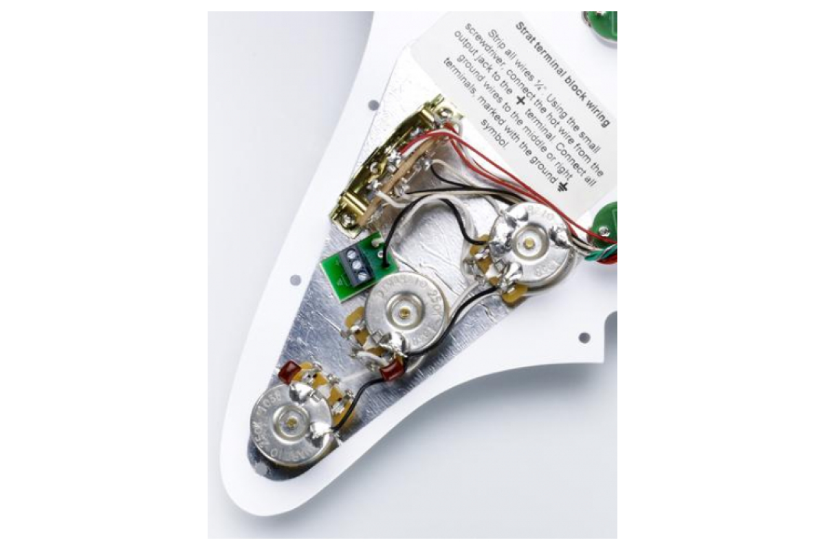 DiMarzio предлагает подготовленные панели со звукоснимателями и электроникой для Strat® гитар.