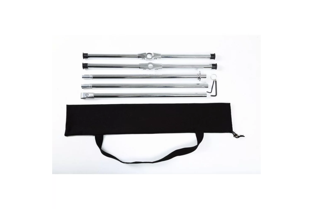 Штатив для екранів ПРО-ЕКРАН шириною до 250 см. Штатив розбірний. У розібраному стані вміщується в компактний чохол розміром 10 на 87 см, що йде в комплекті. Розбирається і збирається протягом однієї хвилини. Має висоту 215 см та масу всього 1 кг.