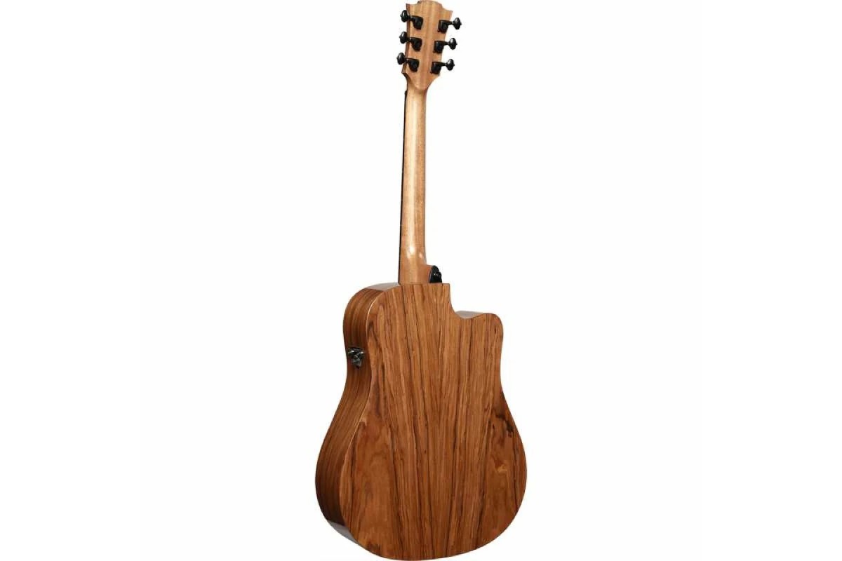 Гітара Lâg TBW2DCE ретельно виготовлена для досягнення звукової якості, яка надихає як новачків, так і професіоналів. Верх гітари виконаний з цілісного червоного кедра, прикрашеного приголомшливою глянсовою обробкою, що надає йому багатий візуальний вигляд. Доповнюють це задня частина та боки, виготовлені з рожевого дерева Сантос, також покриті глянсовою обробкою, щоб забезпечити гармонійне поєднання елегантності та міцності. Бридж та гриф виконані із чорного дерева Бранковуд, що посилює артистичний шарм гітари. Зроблений з любайського махагоні гриф TBW2DCE забезпечує комфортне та плавне ігрове враження. Сатинова обробка грифа та гнучка двостороння система струнних прутів доповнюють грабельність, забезпечуючи легкість налаштування. Характерний чорний гриф головки Бранковуд доповнює зовнішній вигляд гітари, що символізує спадщину та інновації, за які відомі гітари Lâg.