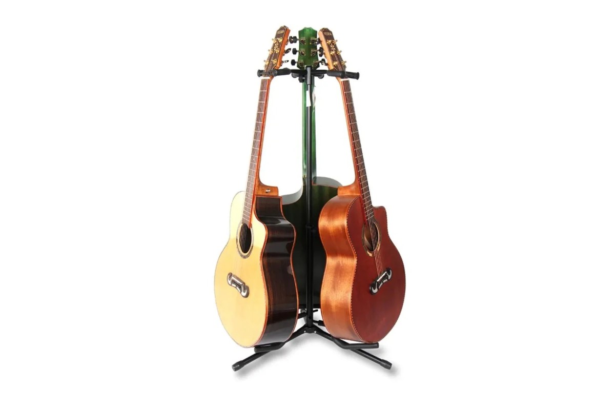 Конструкція: підлогова стійка з трьома полицями, що дозволяє розмістити до трьох гітар одночасно.