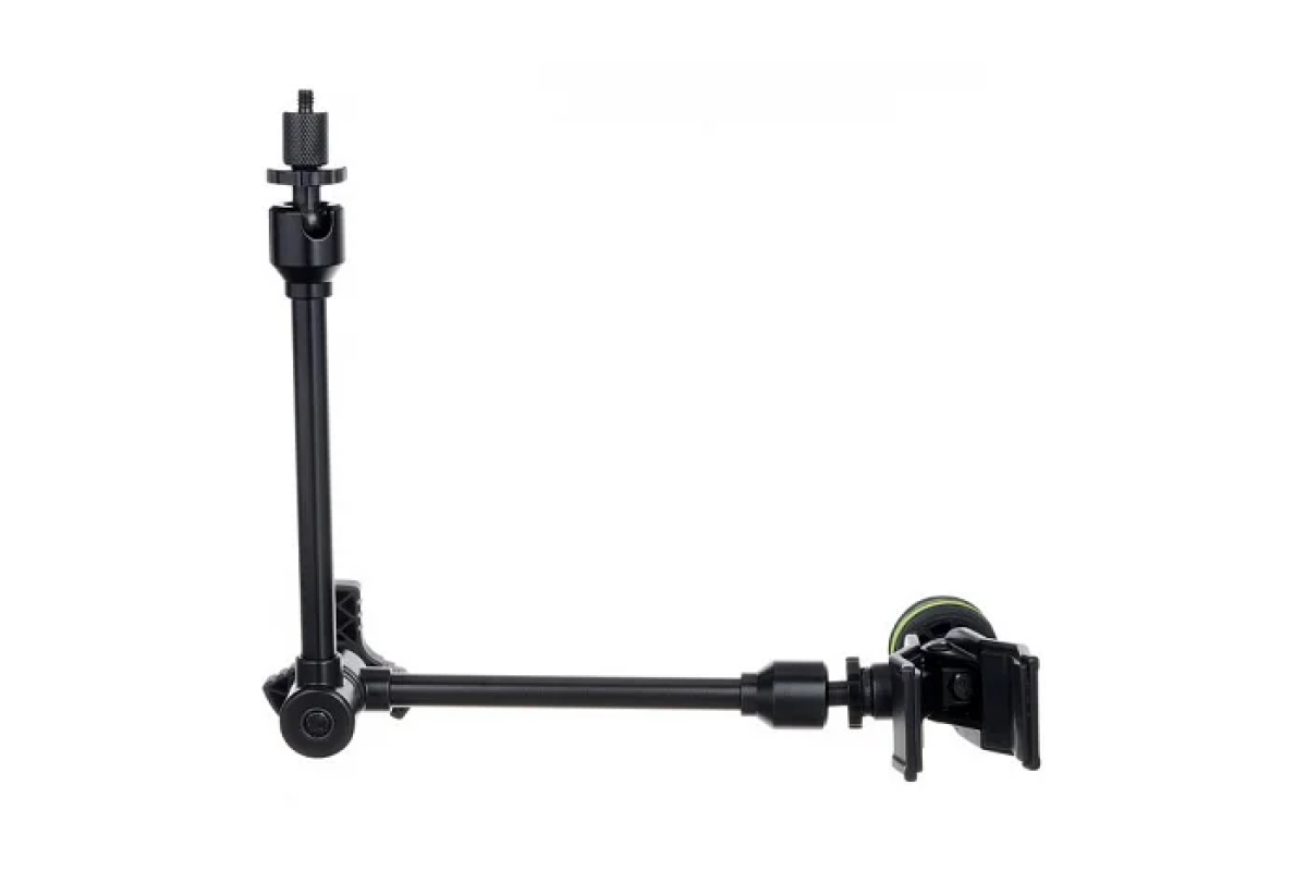 Основна особливість: для фіксації та розблокування всіх трьох шарнірів потрібен лише один регулювальний гвинт. Як тільки ви знайдете потрібне положення, затягніть гвинт, що фіксує, і позиція VARI®-ARM L 38 буде надійно і безпечно утримуватися. Адаптер, що входить до комплекту (з різьблення 3/8" на 1/4"), забезпечує повну гнучкість, дозволяючи використовувати практично будь-яку камеру, портативний рекордер або кріплення для смартфона, доступні на ринку, з VARI®-ARM L 38.