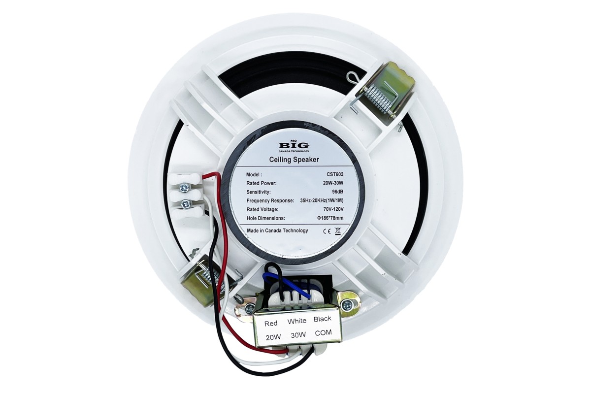 Ця стельова акустична система від бренду BIG забезпечує чисте та збалансоване звучання для житлових, комерційних та офісних приміщень. Вона оснащена двосмуговою системою з ВЧ твітером Mylar 30 мм та НЧ динаміком 160 мм, що гарантує чіткі високі частоти та глибокий бас. Вологостійка конструкція та поліпропіленовий дифузор з бутиловим підвісом забезпечують надійну роботу у вологих приміщеннях, а трансформатор 100 В дозволяє інтегрувати систему у фонтові та оповісні системи.