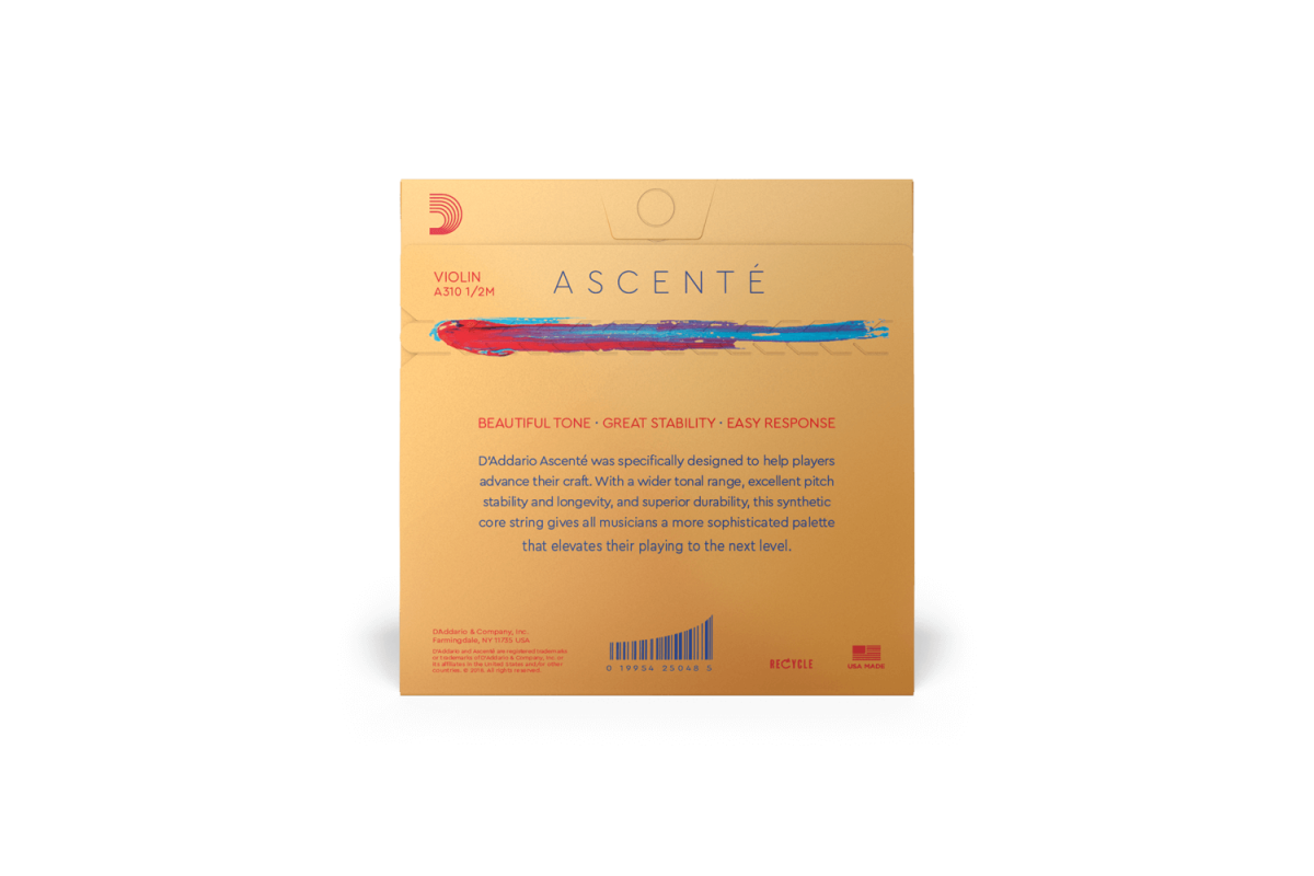 Набір струн D'Addario Ascenté для скрипки 1/2 розміру (11.5" мензура) створений для музикантів, які прагнуть до бездоганного виконання. Ці струни мають синтетичне осердя, що забезпечує багатий та елегантний тон, наближений до традиційних жильних струн, а також стабільний і надійний стрій під час тривалих репетицій та виступів.