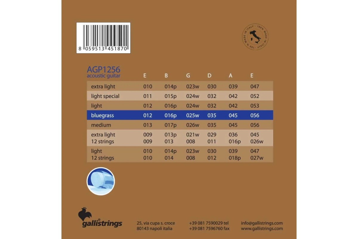Технічні характеристики Gallistrings AGP1256 BLUEGRASS: