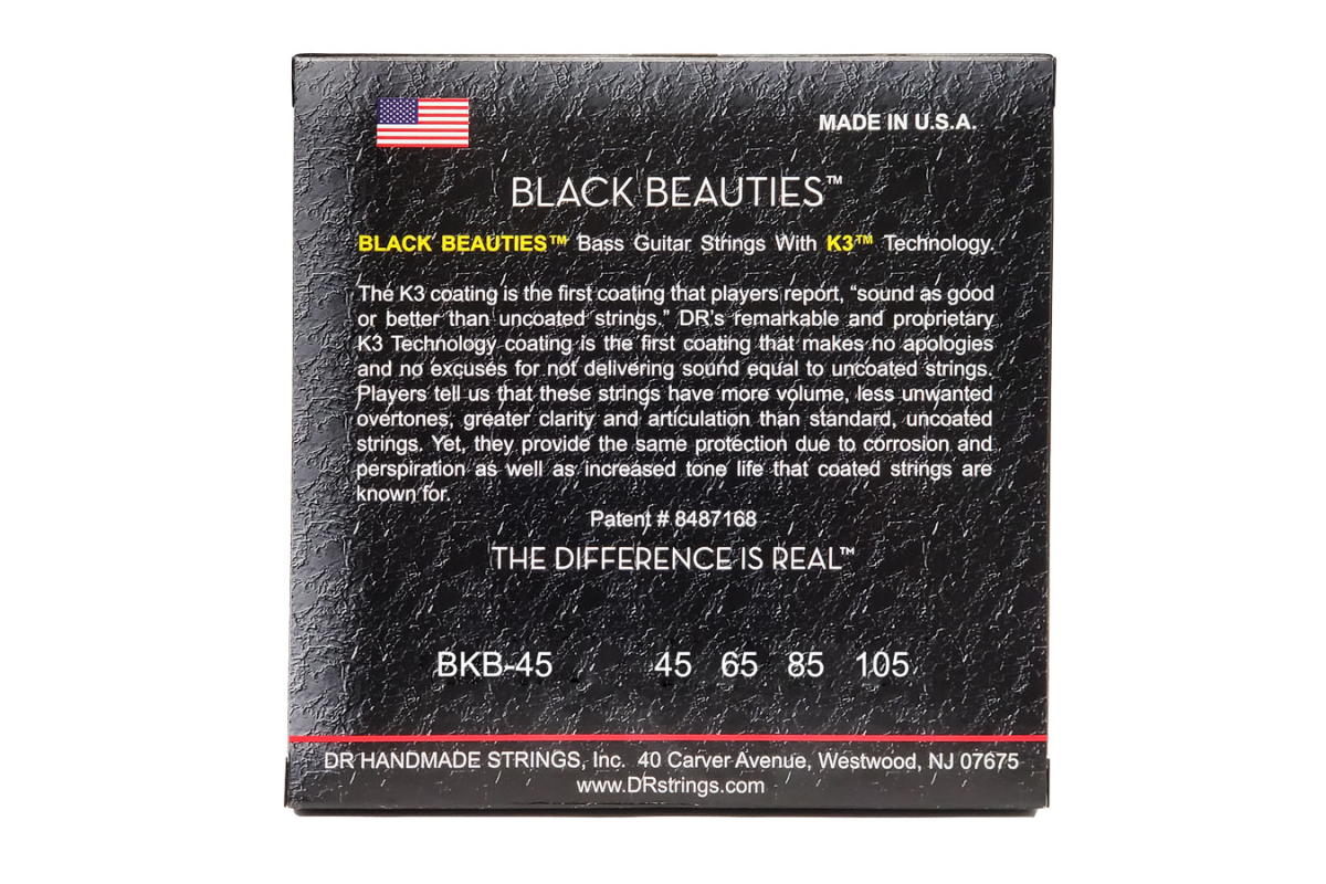 Кольорові бас-гітарні струни серії Black Beauties™ поєднують тональні переваги круглого сердечника і фірмове захисне покриття K3 елегантного чорного кольору, що продовжує термін служби ваших струн. Круглий сердечник та обмотка з нержавіючої сталі забезпечують насиченість звучання та збалансований гармонійний відгук, а також зручність гри, яка є однією з відмінних рис усіх струн DR. Жорстке захисне покриття також додає неймовірну чіткість та артикуляцію кожної ноти, зменшуючи небажані обертони.