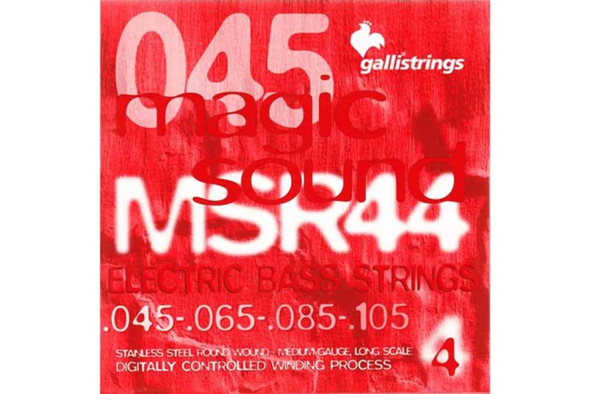 Комплект струн для бас-гітари GALLI Magic Sound MSR44 - сталеві Комплект струн з обмоткою для бас-гітари. Середнє натяг. Калібр струн: .045, .065, .085, .105.