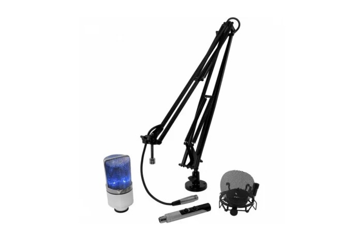 MXL OSPRO BW - комплект для високоякісних стримів, подкастів, озвучування відео, прямих трансляцій і т.д., який включає конденсаторний XLR мікрофон MXL 990 Blizzard, настільну мікрофонну стійку з вбудованим кабелем XLR, поп-фільтр, шокмаунт і ауді Pro XLR-to-USB для прямого підключення до комп'ютера (USB). Мікрофон MXL 990 Blizzard білого кольору має вбудоване LED підсвічування.