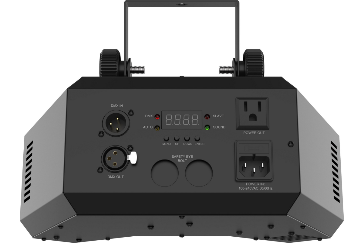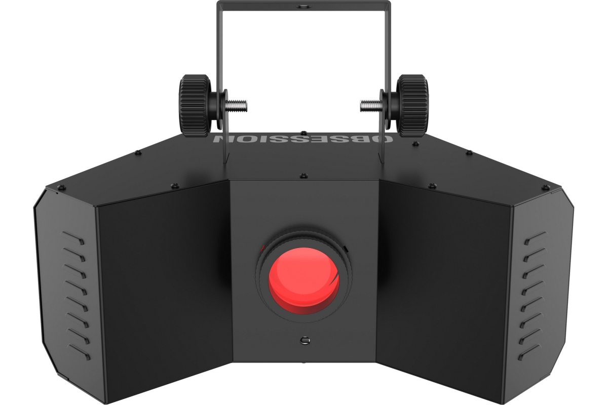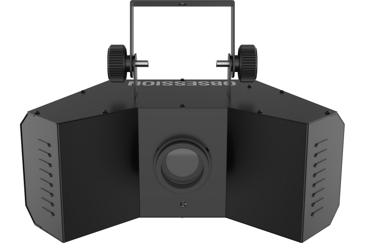 Захопи увагу глядачів використовуючи захоплюючі повітряні ефекти від Obsession, компактного світлодіодного світлового приладу, який проектує різнокольорові обертові гобо (трафарети), що постійно змінюються. Роздільні колеса кольору і гобо дозволяють прикрасити приміщення узорами, що динамічно змінюються. Створюй синхронізовані шоу в режимі Master/Slave за допомогою вбудованих автоматизованих програм або використовуй інші варіанти керування, такі як автономний режим, DMX режим або пульт дистанційного керування IRC-6 (придбається окремо).