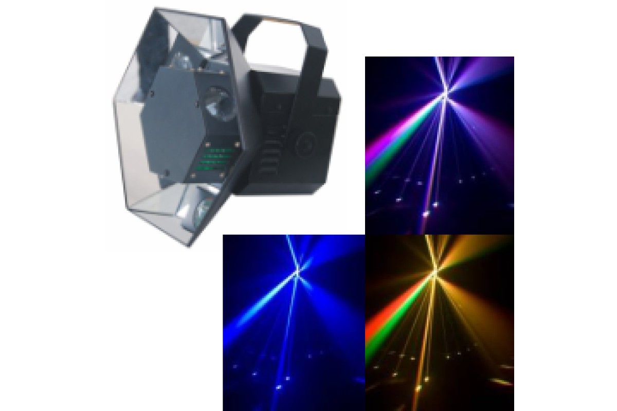 Прилад оснащений дзеркальною обертаючою сорочкою, яка відображає потужні світлові промені та створює ефект рухомого світла. Кольори можуть змінюватися, промені обертатися, а також підтримується стробоскопічний ефект.