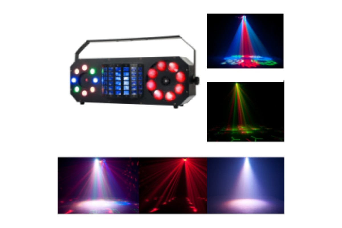 BIG SUPER COMBO — сучасний світлодіодний комбо-прилад 4-в-1, що поєднує популярні світлові ефекти в одному пристрої. Він забезпечує неймовірну яскравість, насиченість кольорів та динаміку, створюючи справжнє шоу для будь-якої сцени чи вечірки.