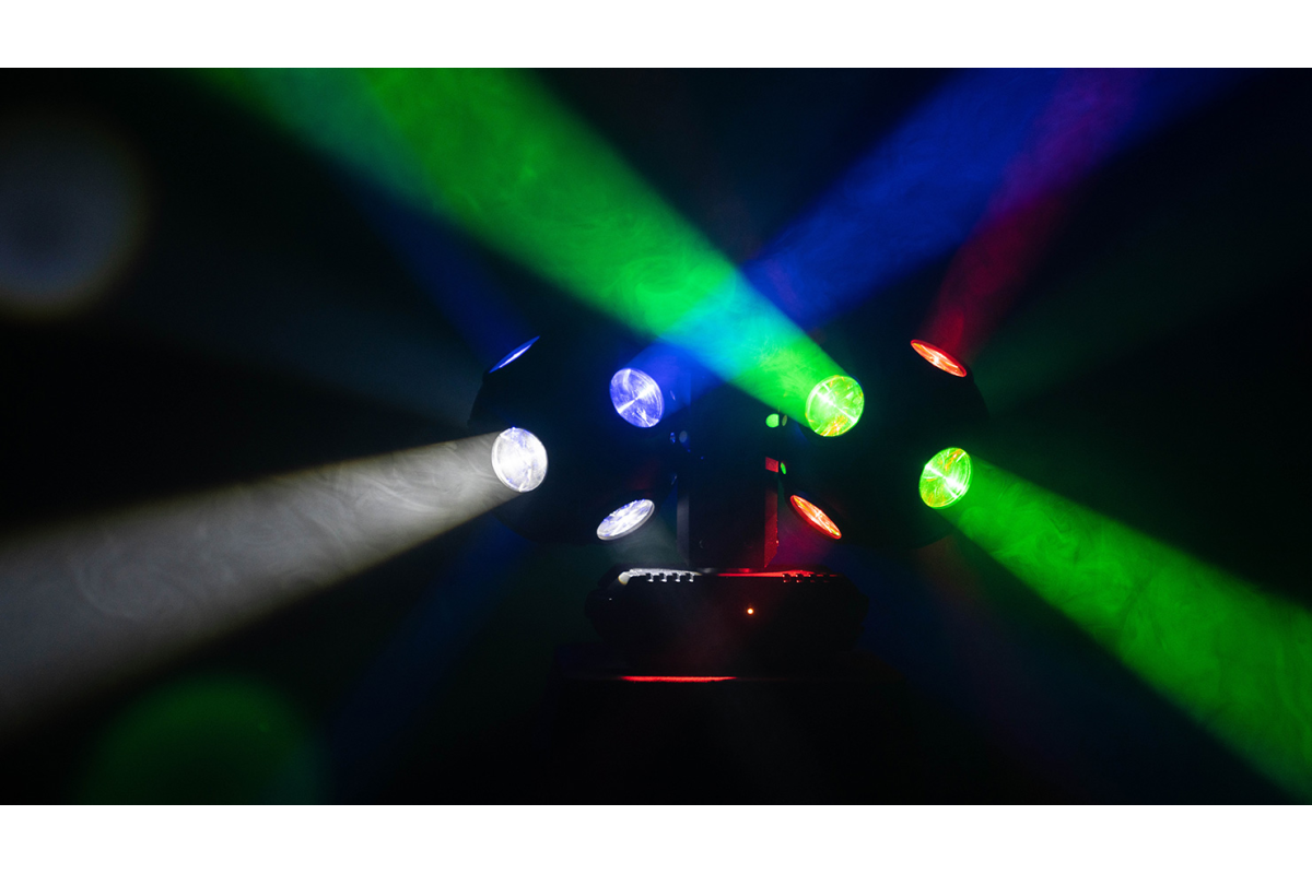 Вузькі, гострі, як бритва, промені світла RGBW створюють дивовижні повітряні ефекти.
