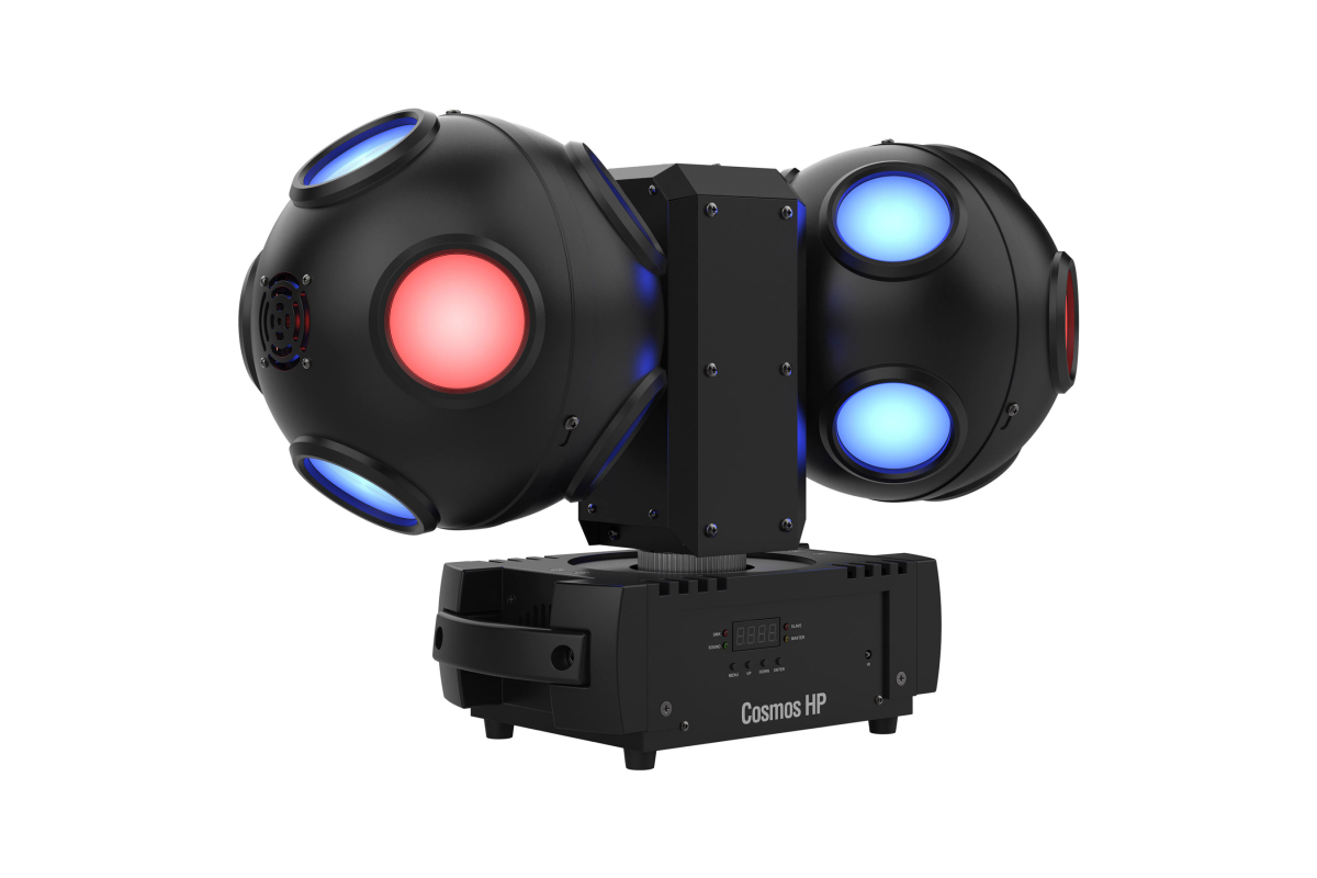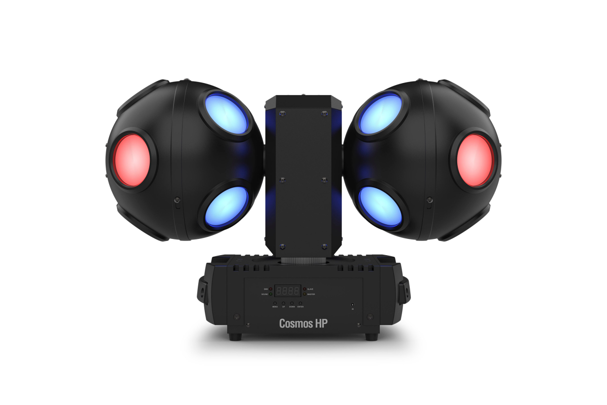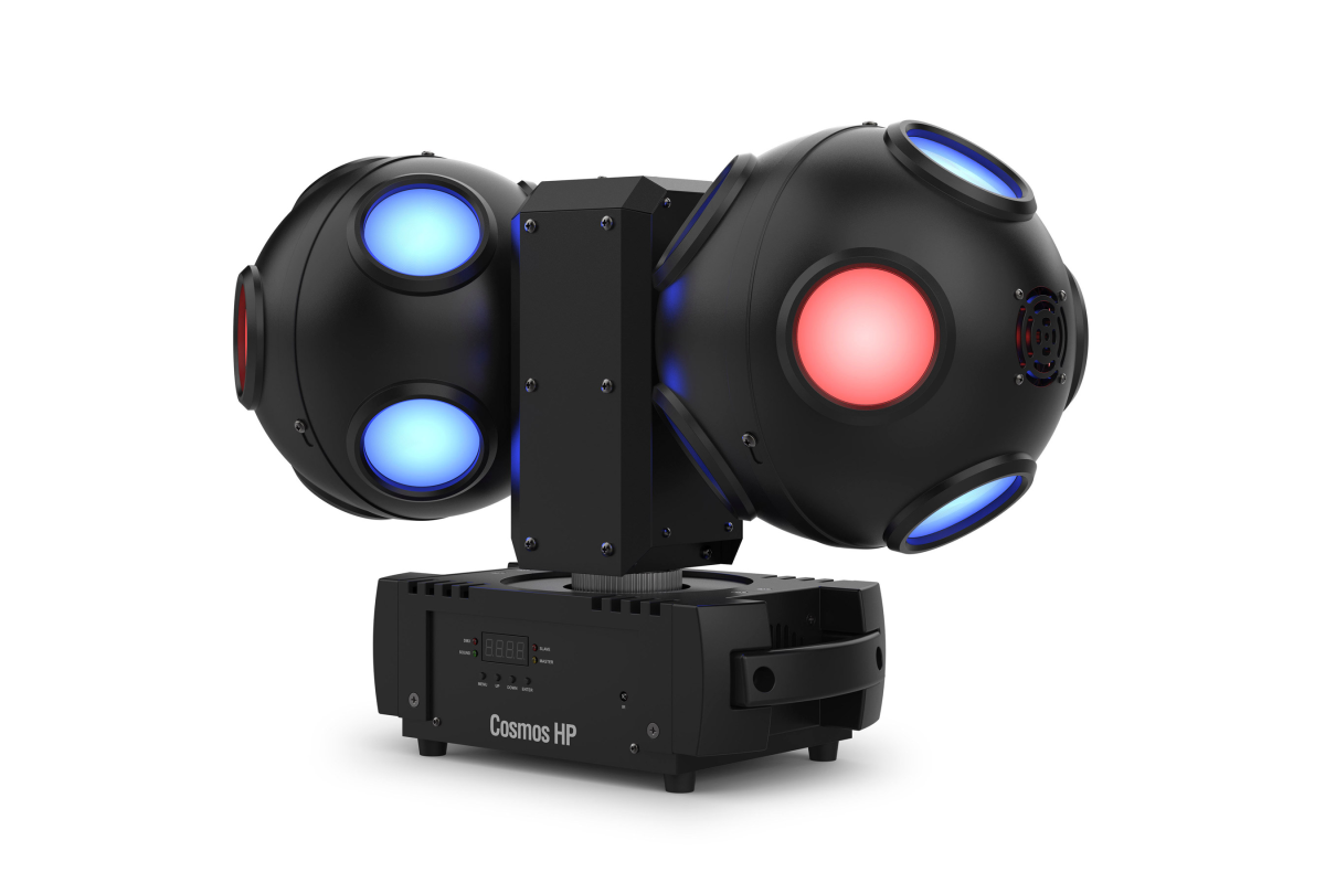 Пориньте в абсолютно новий всесвіт енергії танцполу з Cosmos HP - потужним світлодіодним світловим приладом, який генерує захоплюючі, різкі як бритва промені світла RGBW для дивовижних повітряних ефектів, які покривають всю кімнату і виглядають чудово з дим-машиною або без неї. Незалежно керовані двигуни безперервно обертають дві наповнені світлодіодами сфери у різних напрямках, створюючи приголомшливий ефект завихрення. Легко створюйте складні образи за допомогою вбудованих автоматичних програм із контролем зон або використовуйте опціональний бездротовий пульт IRC-6 для зручного бездротового керування.
