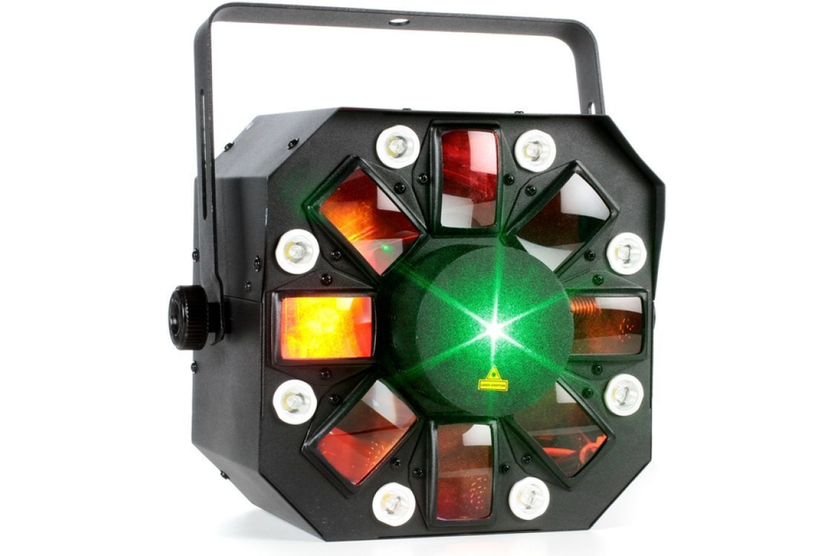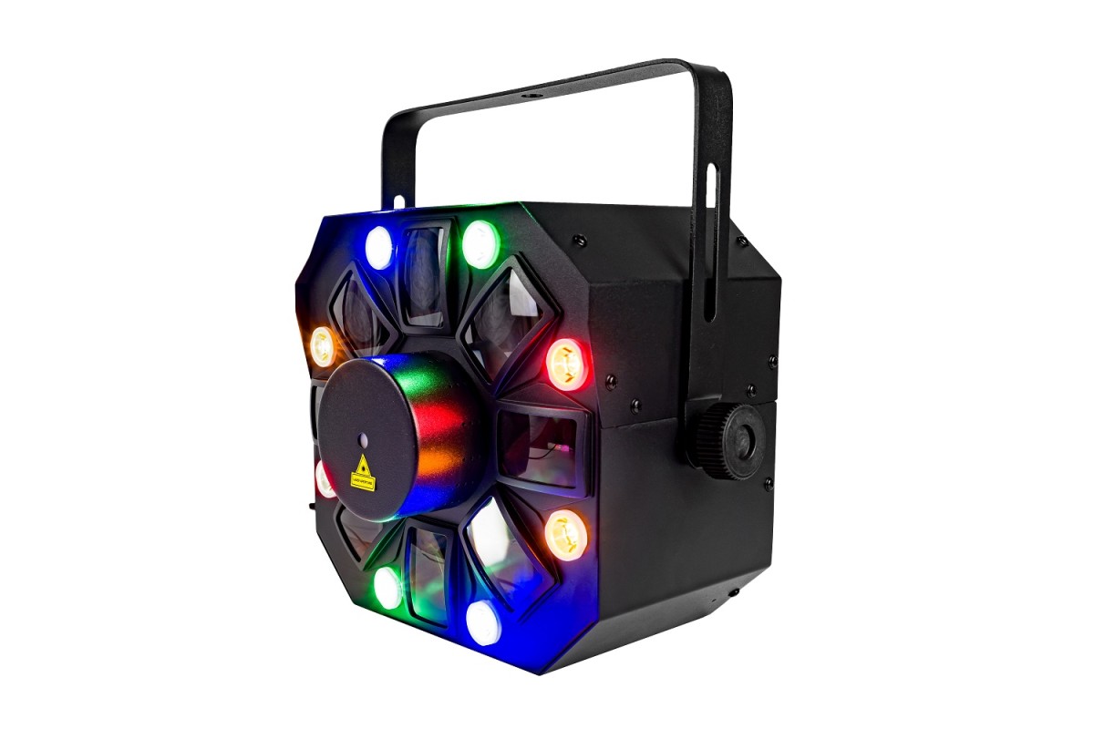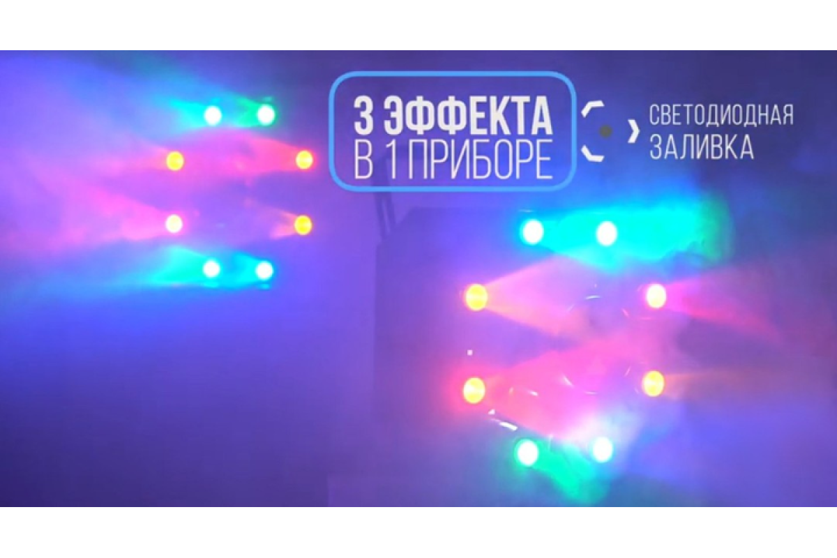Білий стробоскоп і RGBAW ефект дербі в одному корпусі