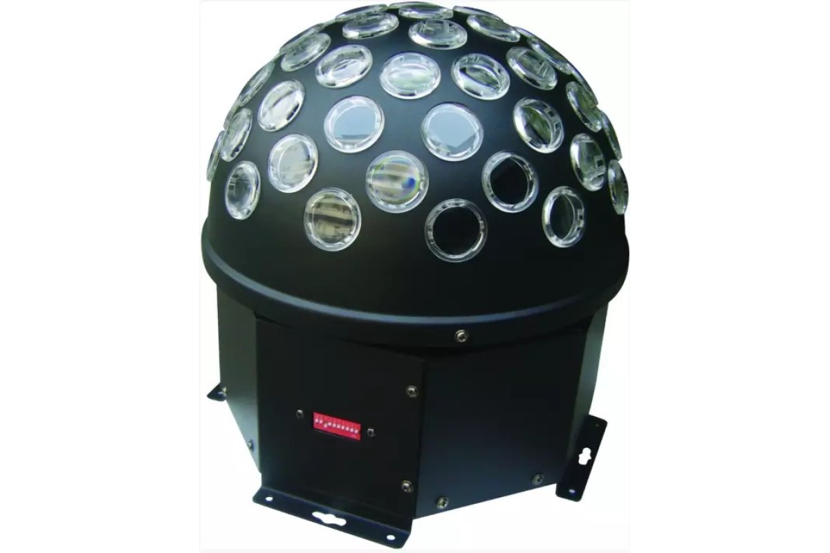 Повнокольоровий світловий LED прилад, обертається за і проти годинникової стрілки, стробирующих і змінює кольору. Працює в автоматичному режимі, від звукової активації або по протоколу DMX-512