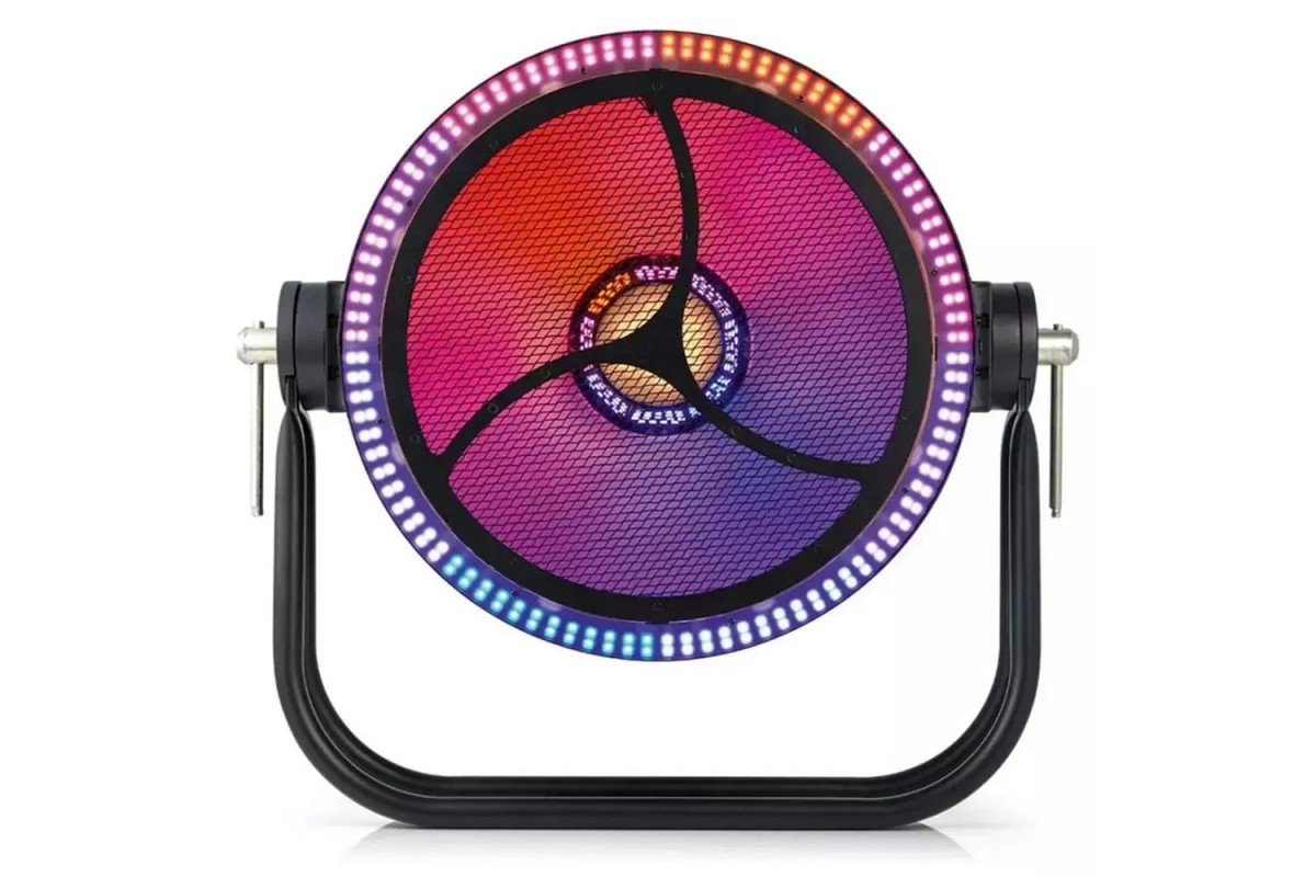 Світлодіодний прожектор POWERlight STAR-400 - це ідеальне поєднання традиційного і сучасного. Він привертає увагу своїм унікальним вінтажним дизайном в ретро стилі. Прилад оснащений світлодіодами RGBWA 468 шт., Сумарною потужністю 375 ват (336-RGB, 87-теплих білих і 45-теплих білих + бурштинових діодів) і при цьому, споживана потужність не перевищує 400 Вт. Користувачеві доступно 19 керованих секцій світлодіодів: 8-сегментні RGB світлодіоди внутрішнього кільця, 2-сегментні центральні WA світлодіоди, 1-сегментні RGB заднього кільця і 8-сегментні RGB зовнішнього кільця, можуть управлятися як єдине ціле або кожен світлодіод незалежно, створюючи переходи, чудову анімацію і ефект веселки на алюмінієвому відбивачі. Крім потужного світлового потоку розсіюється світла, модель відрізняється можливістю плавної зміни кольору, наявність стробоскопічного ефекту зі змінною швидкістю і 16-бітовим диммером. STAR-400 може працювати в декількох режимах: Master / Slave, Stand Alone, Auto mode, а також є кілька режимів роботи по протоколу DMX512 на 2; 7; 16; 51; 55 і 64 каналів з попередньо запрограмованими пиксельними ефектами. Прожектор здатний ефективно висвітлювати великі приміщення і сцени і буде хорошим вибором для шоу, телебачення, масових заходів та концертів.