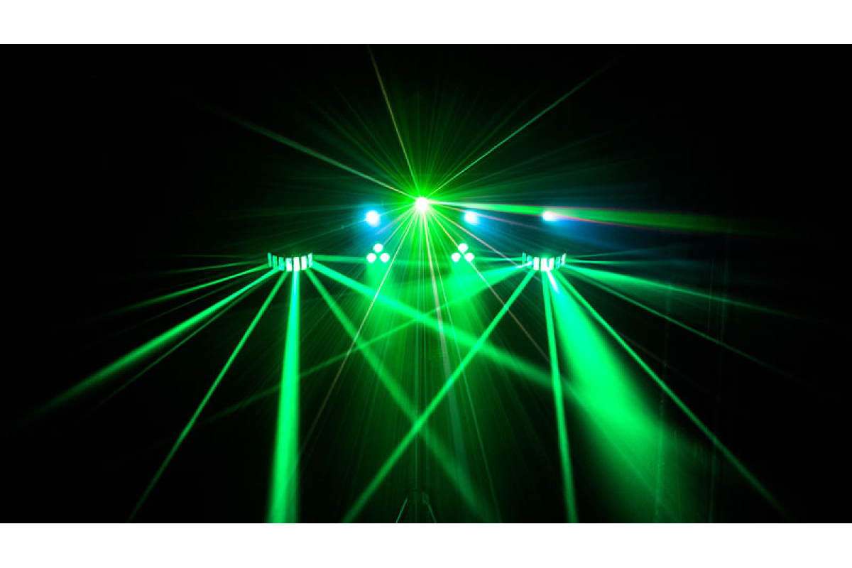 Це повний набір для мобільних діджеїв, клубів, івентів та шоу-програм, який дозволяє створювати професійне світлове шоу без зайвих витрат часу та обладнання.
