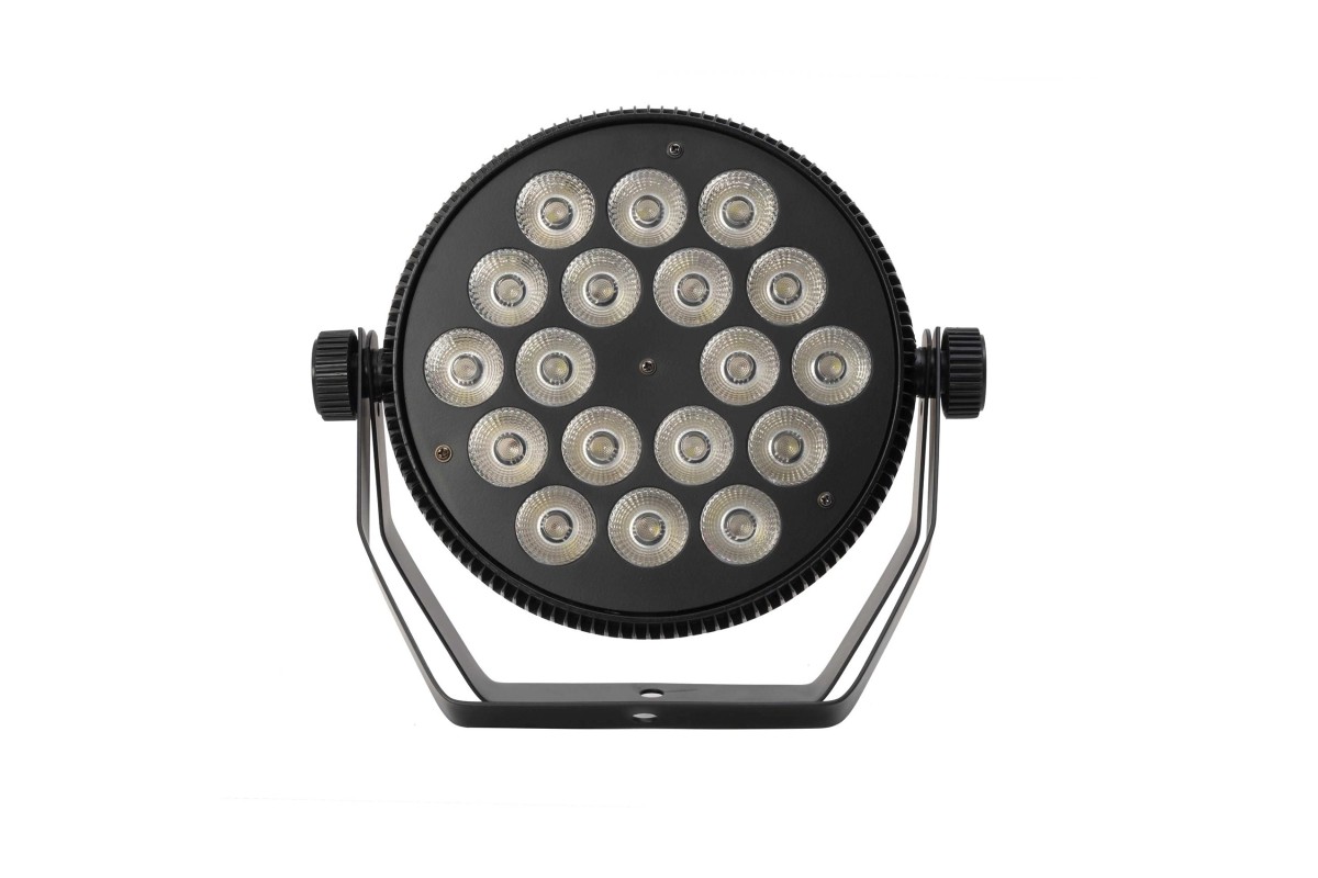 18 світлодіодів RGBW (4-в-1) x 10 Вт: Це забезпечує чудову яскравість і яскраве змішування кольорів (червоний, зелений, синій, білий), що дозволяє створювати неймовірні ефекти та атмосферу на сцені.