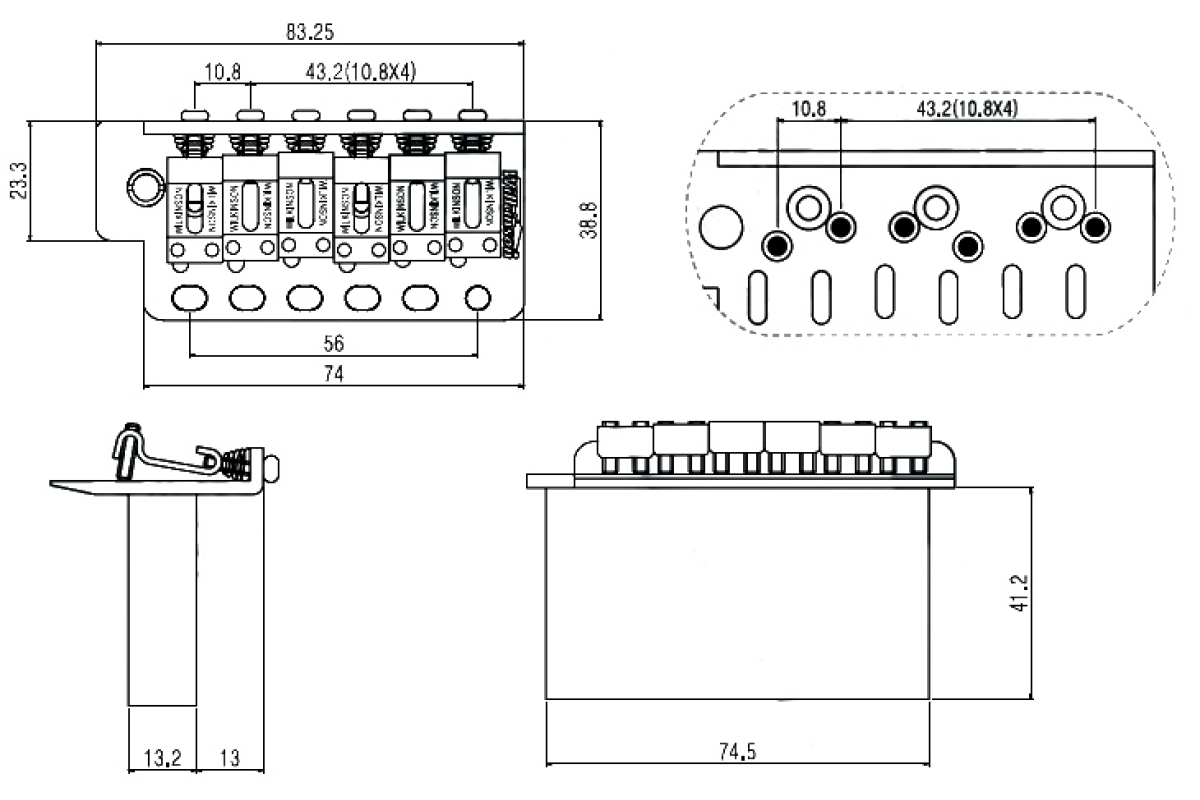 Відстань між струнами - 10.8 мм,