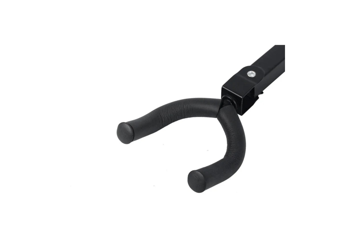 Забудьте про пошкодження грифу — гачок оснащений гумовою подушкою для м'якого і безпечного тримання інструмента. Регульований з'єднувальний механізм із зубчастим ущільнювачем та поворотний кут на 360° забезпечують ідеальний кут нахилу для Вашого інструмента.
