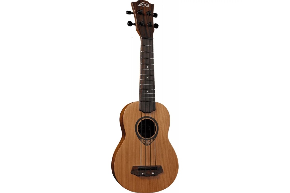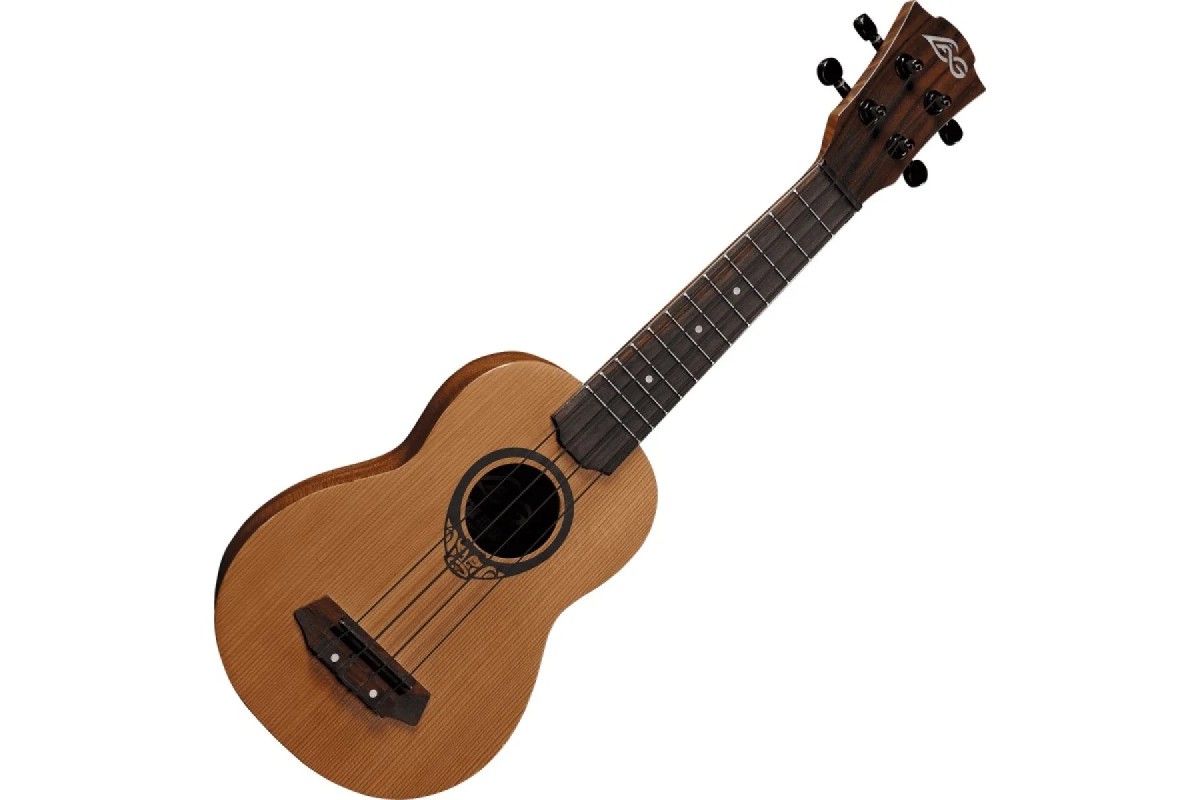 LAG TKU10S – укулеле від відомого французького бренду в корпусі розміру сопрано. Корпус Tiki uku 10 повністю виконаний з ламінованої деревини сапеле з матовою обробкою open pore, яка дозволяє дереву дихати і найкращим чином позначається на його акустичні властивості. Модель сопрано – це укулеле самого маленького з можливих розмірів, підходить для початківців, а також музикантів з невеликим розміром руки, при цьому звучання – гарне, мелодійне, чітке і чисте і ні в чому не поступається крупнішим інструментам. Гриф і голова грифа також виконані з сапеле, з матовою обробкою. На грифі 12 ладів з інкрустацією перламутровими точками, мензура – 344 міліметри. Накладка на гриф і бридж – з темного горіха. Модель представлена в елегантному натуральному кольорі, матова обробка вигідно демонструє фактуру дерева. На нижній деці – оригінальна графіка « Tiki Uku & raquo ;. Зовнішність укулеле гармонійно доповнюють чорні матові кілки. На інструменті встановлені струни Aquila.