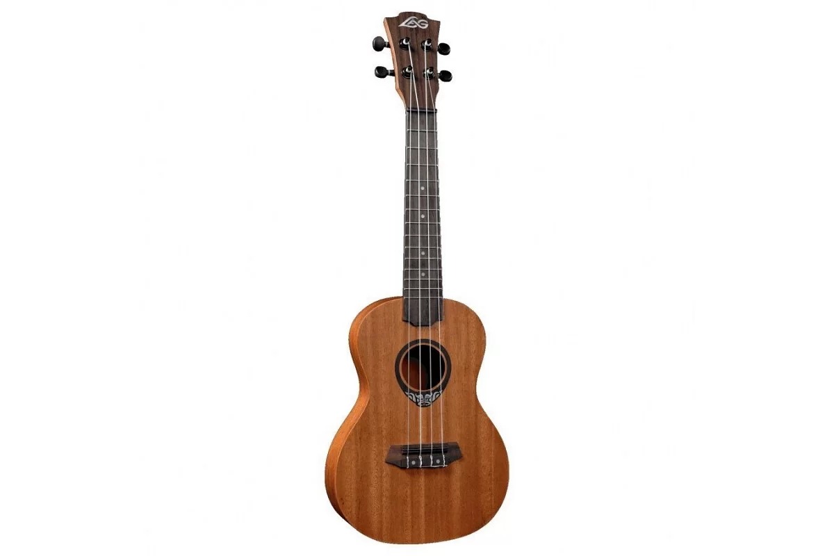LAG TKU110C – укулеле від відомого французького бренду в тонкому корпусі розміру концерт, з вигнутою нижньою декою. Корпус укулеле виконаний з ламінованої деревини сапеле з матовою обробкою open pore, яка дозволяє дереву дихати і найкращим чином позначається на його акустичні властивості. Верхня дека – з масиву сапеле. Розмір концерт – трохи більше, ніж сопрано, він дозволяє отримати більш широкий діапазон, багатий, насичений звук, який цілком підійде для виступів як соло, так і з групою. Гриф також виконаний з сапеле, з матовою обробкою. На грифі 12 ладів з інкрустацією перламутровими точками, мензура – 344 міліметри. Голова грифа, накладка на гриф і бридж – з темного горіха. Модель представлена в елегантному натуральному кольорі, матова обробка вигідно демонструє фактуру дерева. На нижній деці – оригінальна графіка « Tiki & raquo ;. Зовнішність укулеле гармонійно доповнюють чорні матові кілки. На інструменті встановлені струни Aquila.