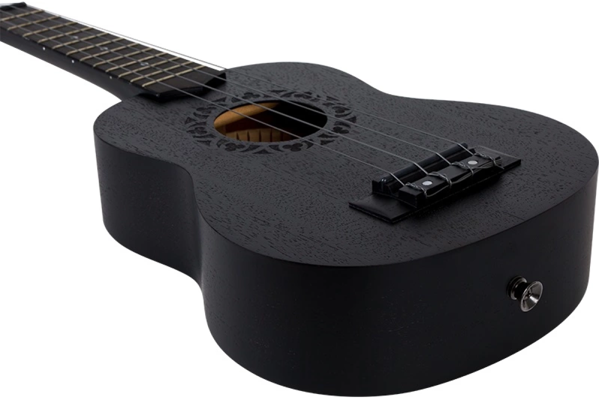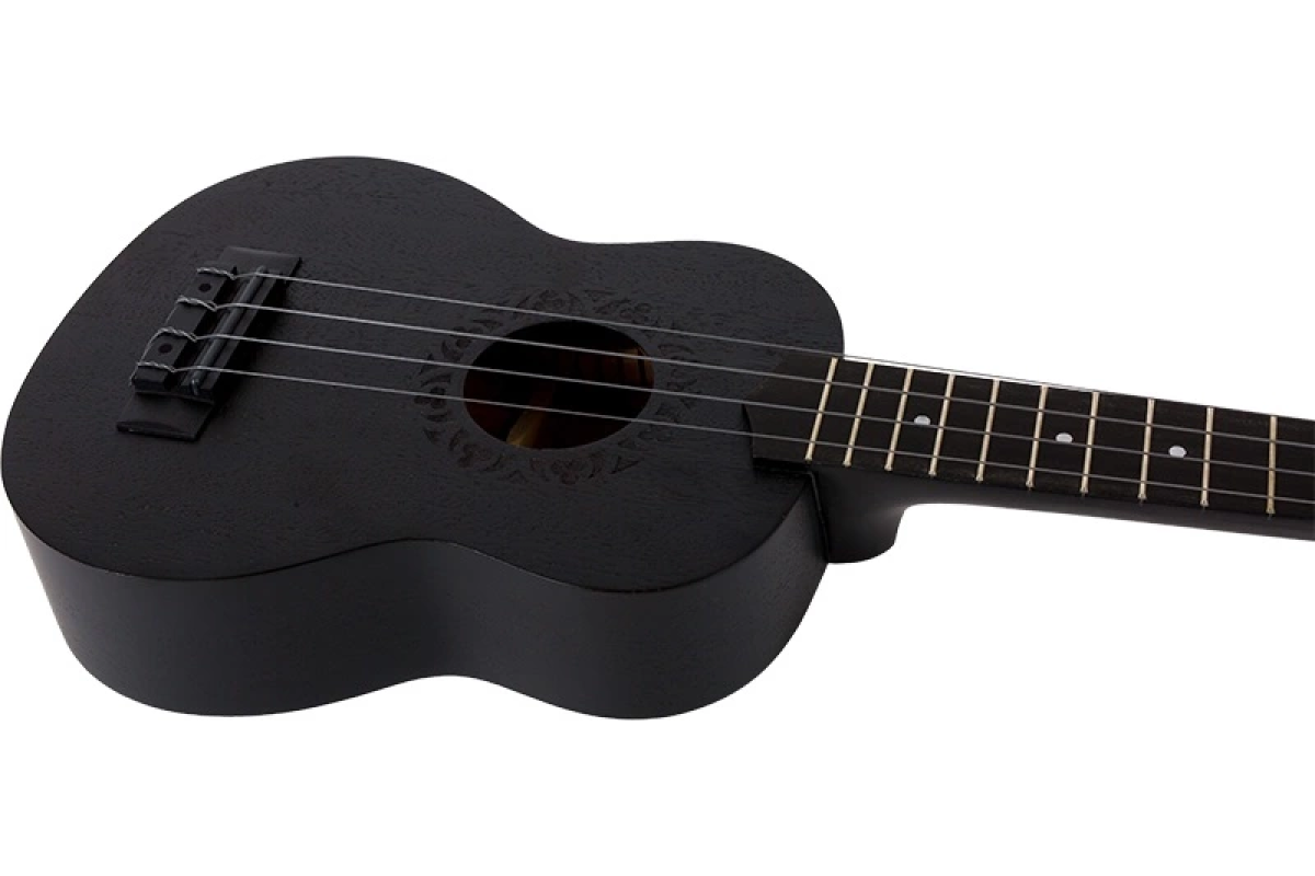 Для виготовлення укулеле сопрано NUS310 ми використовували сапеле ламінат. Сапеле – це легка деревина з тропічної Африки із кольором від золотого до темного червоно-коричневого, яку ми пофарбували у чорний для яскравого та незвичайного вигляду. Як близький родич червоного дерева, текстура сапеле однорідна і має хороший натуральний блиск. Його природний резонанс посилюється та підкреслюється за рахунок вигнутої задньої спинки, надаючи чисте та яскраве звучання. Розетки на наших укулелі намальовані вручну та вигравіровані лазером.